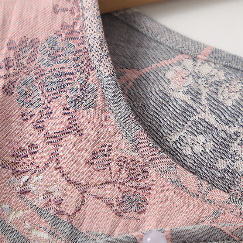 新しい中国風の純綿先染めジャカードパジャマ女性のための中国風のバックルレトロなルーズ通気性ラウンドネックホームウェアセット