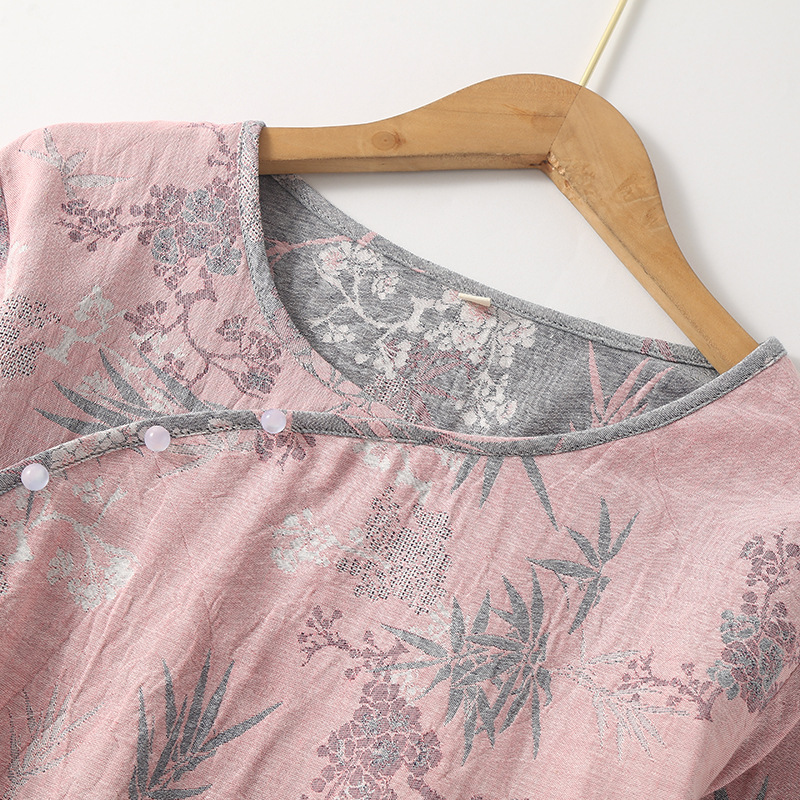 中年妈妈睡衣女春秋季薄款国风圆领盘扣福字宽松大码家居服可外穿