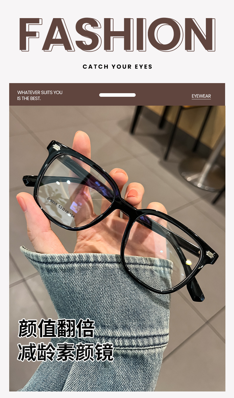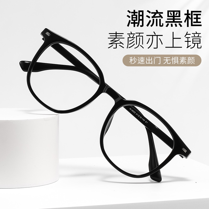 新早八すっぴん高級感黒枠近視メガネ女性可度数大枠丸顔メガネフレームZ9055BL