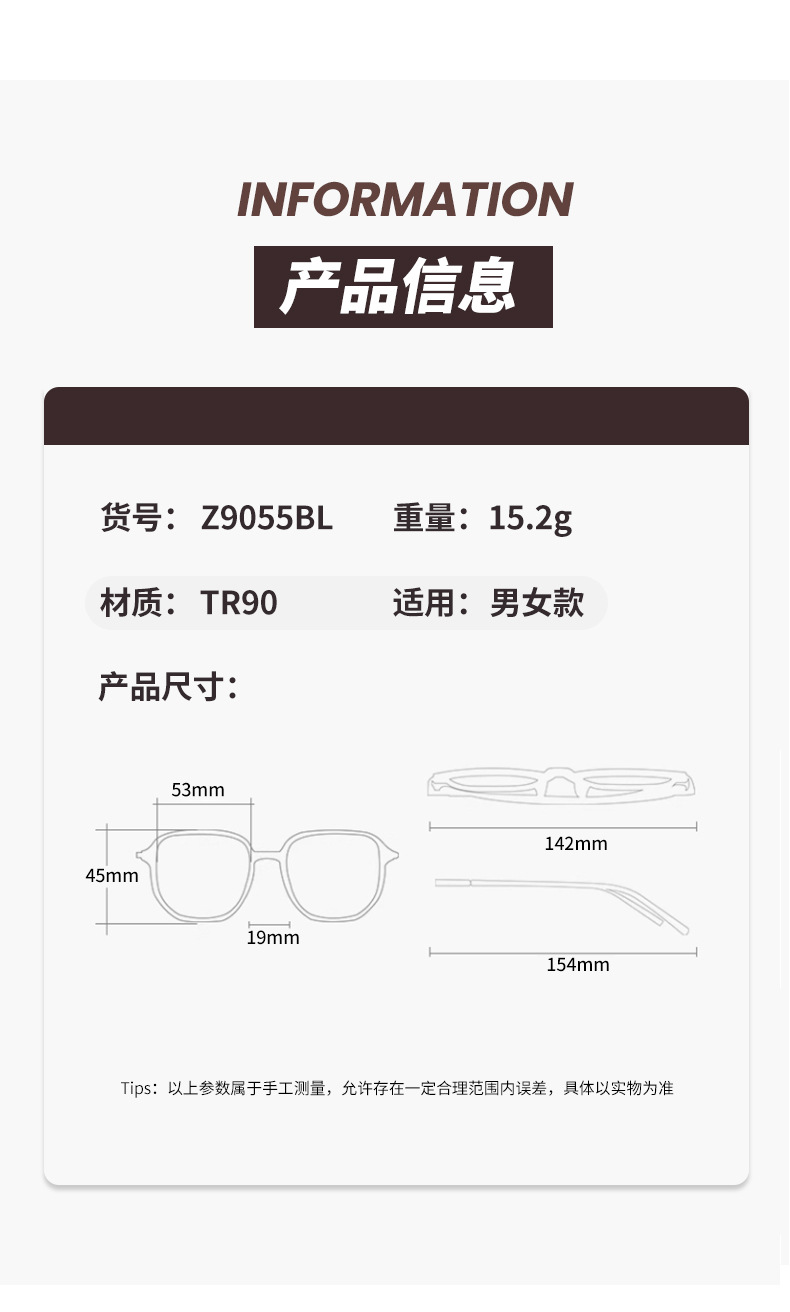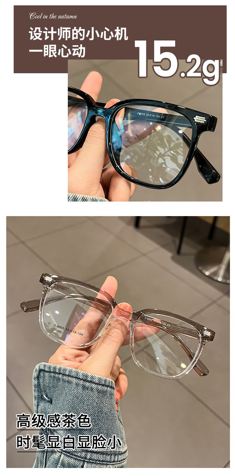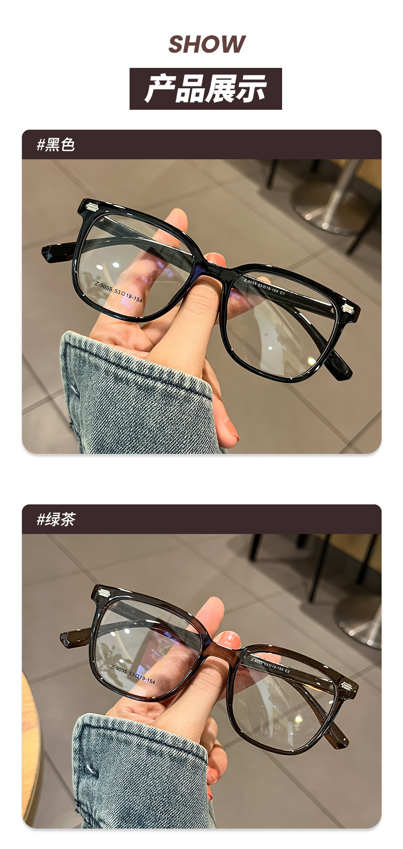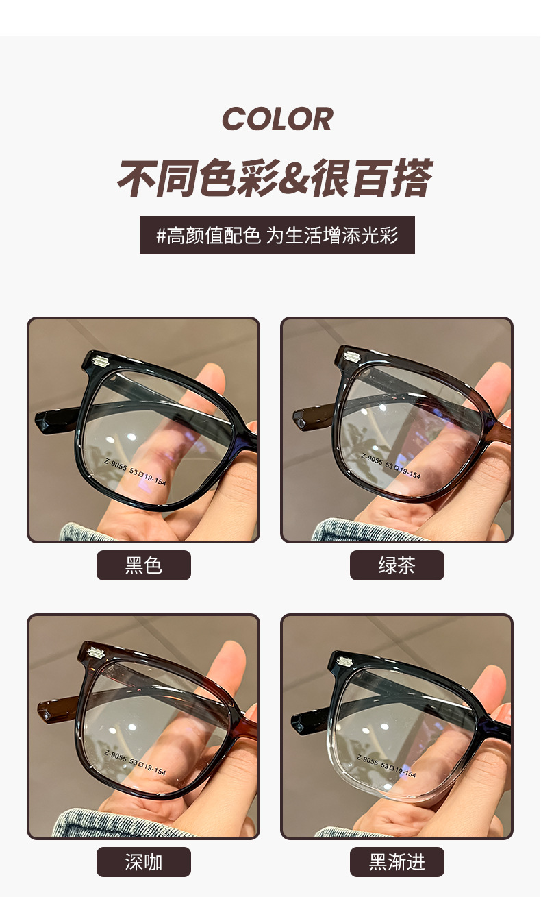 新品おしゃれ冷茶色メガネフレームレディース高級感近視可度数太めフレームメガネフレーム男Z9052BL