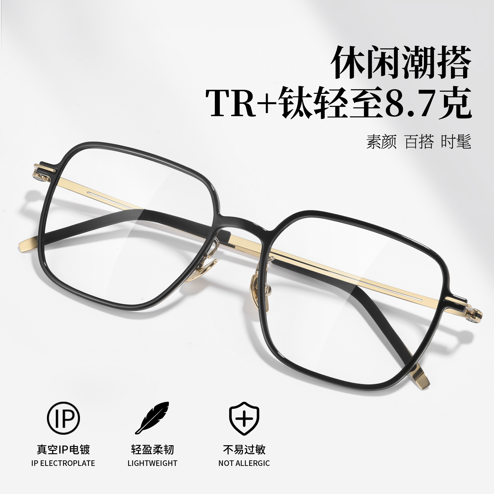 大脸专属超轻8.6G大框纯钛近视眼镜男时尚多边形眼镜框女MP306BJZ