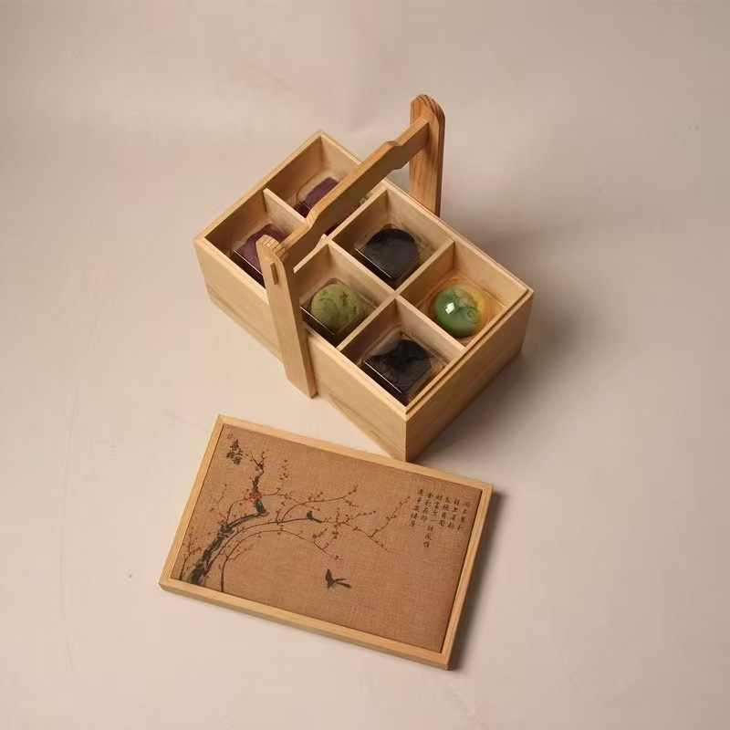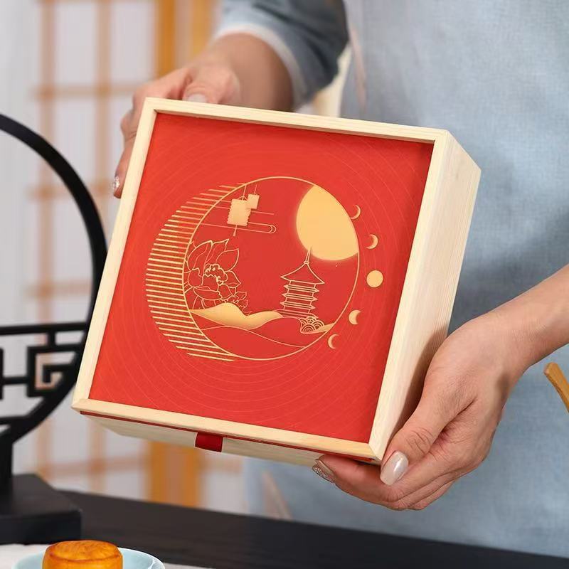 中国の高級雪肌月餅ペストリー木製収納空のギフトボックス木製新月餅ボックスギフトボックス