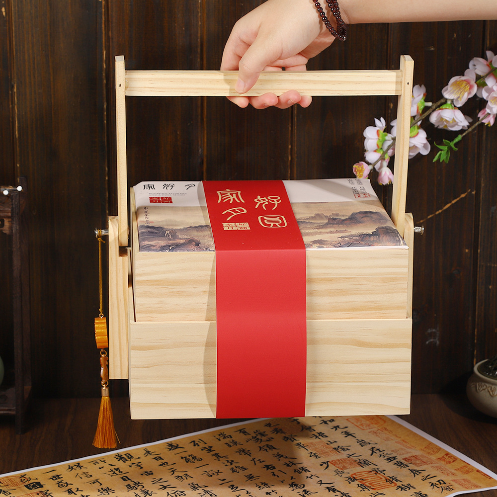 無垢材多層食品ボックス中国風アンティークポータブル収納ボックス端午節中秋節ギフトボックスピクニックポータブルハンドボックス