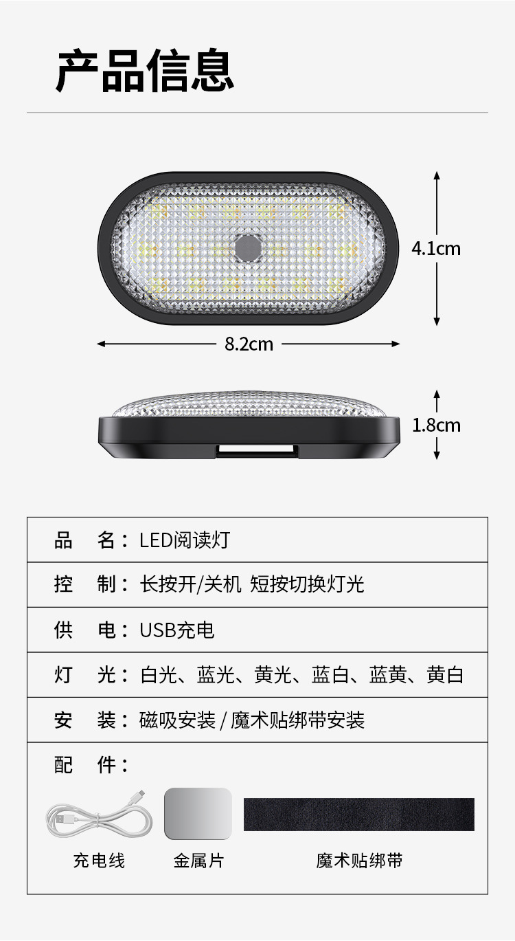 車用照明 読書用磁気LEDライト 新エネルギー電気自動車 後部座席ライト 夜間自転車走行用警告灯 車載ライト