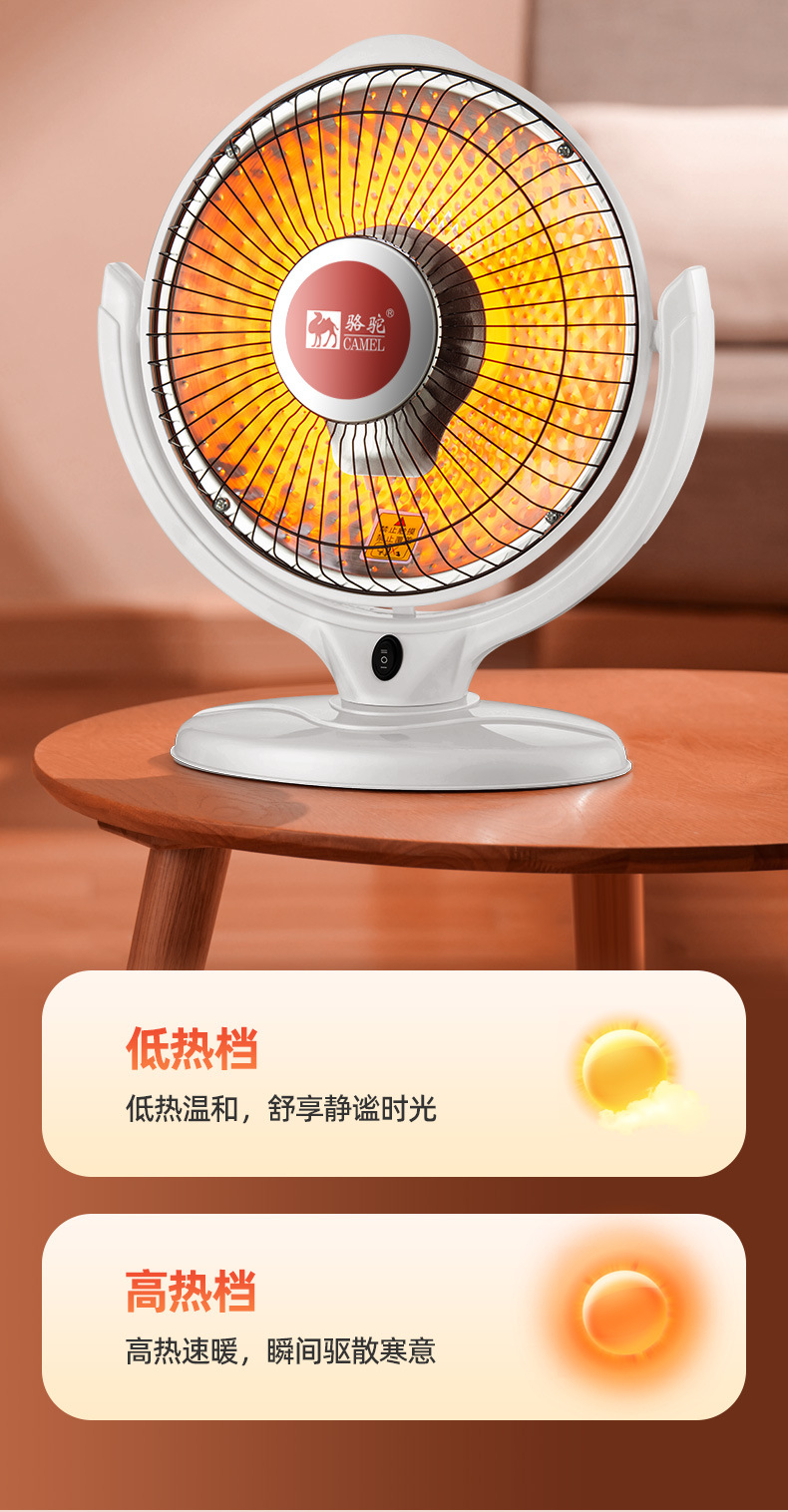骆驼小太阳取暖器 台式电暖器 烤火炉 电热扇电暖气 节能供应厂家