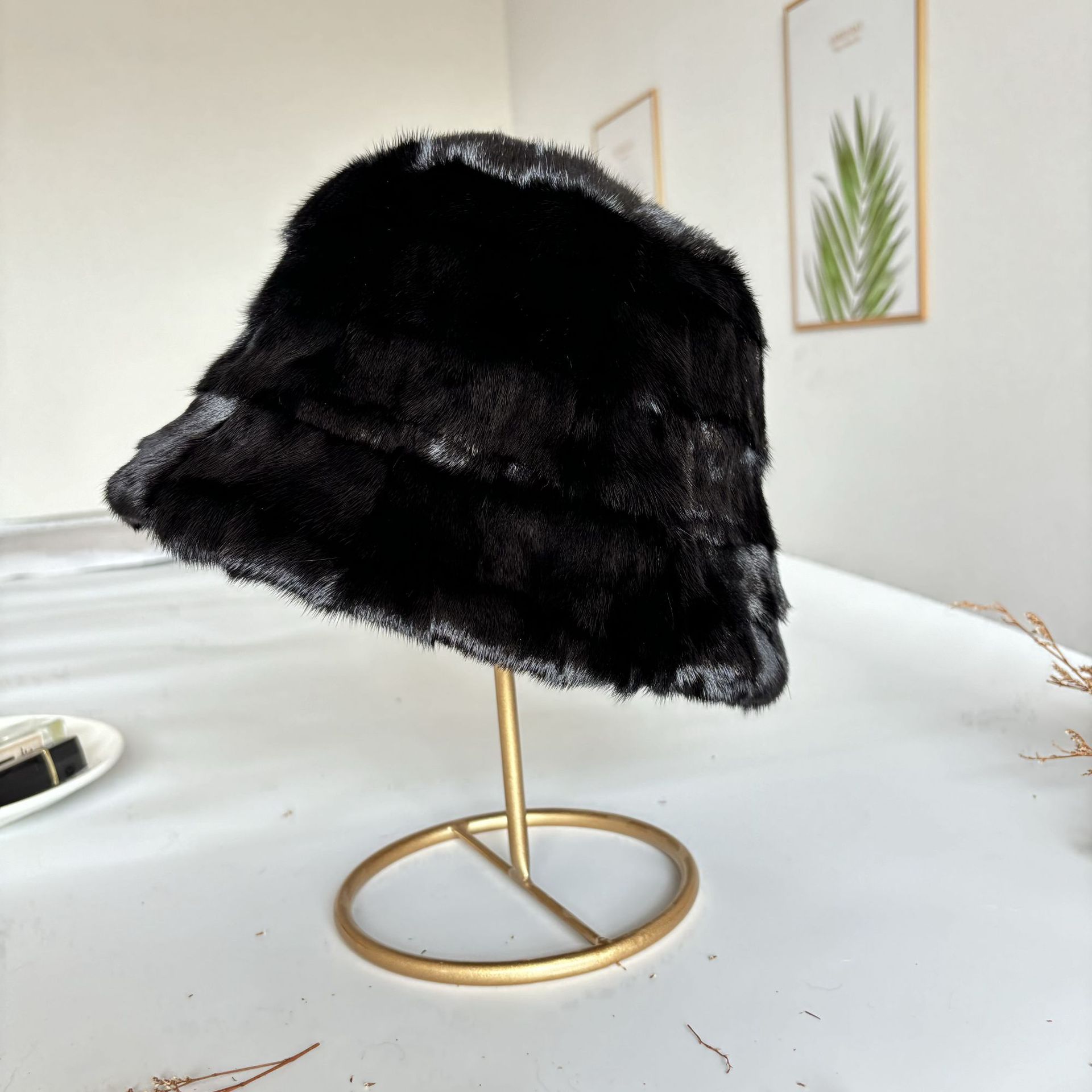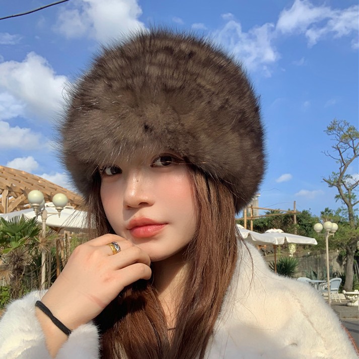 ミンクファー漁師帽 女性用 保温性のあるウール素材 小顔効果 多用途 レトロ ミンクベルベットファー ミンクファー帽子 女性用 冬用 丸型