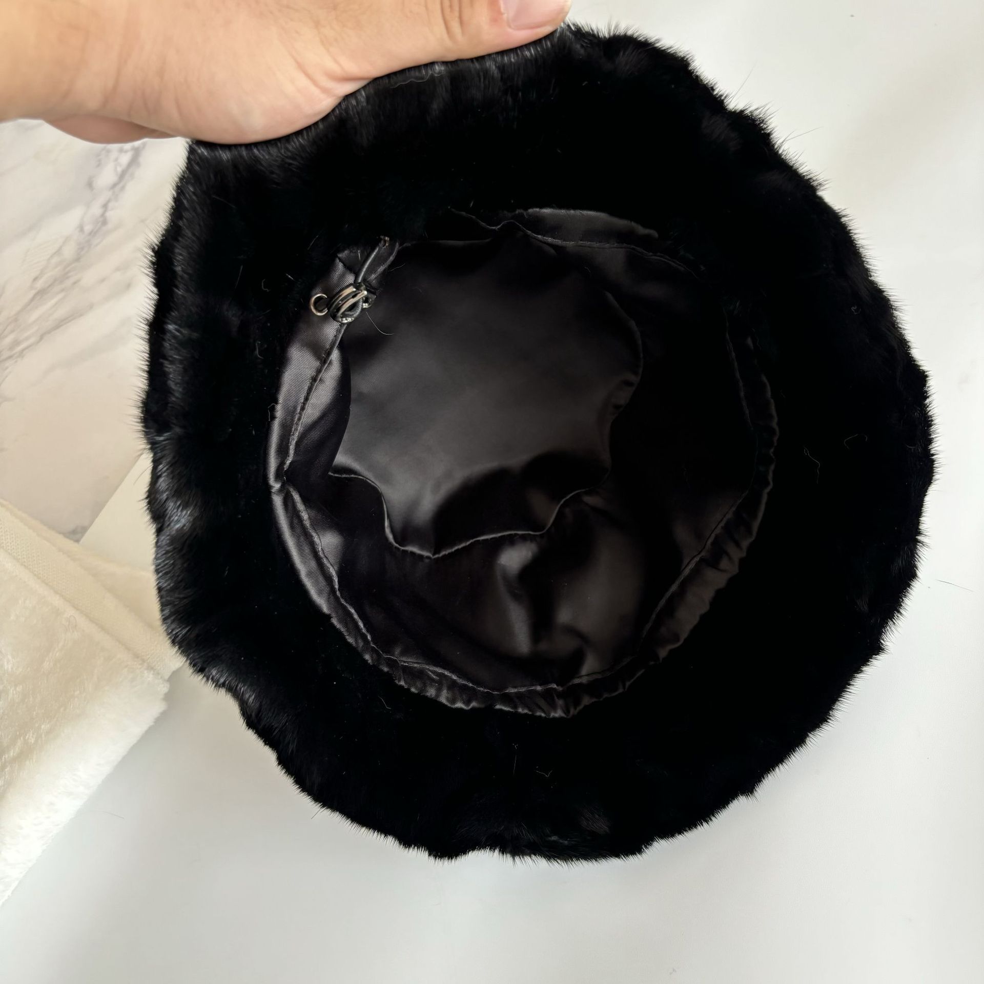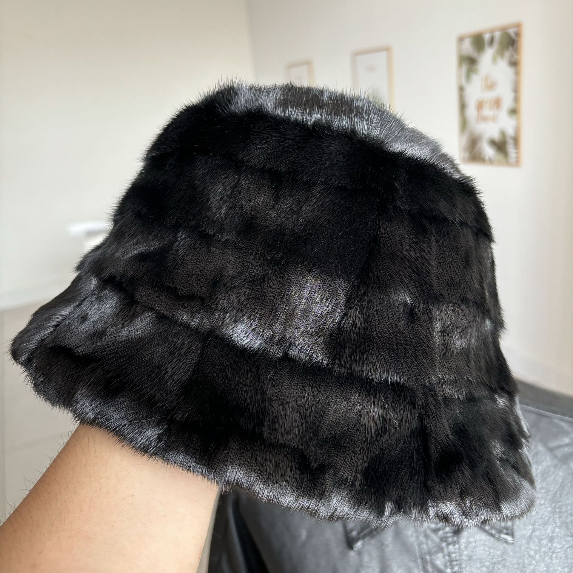ミンクの毛皮の帽子の子供の秋冬の保温のミンクの毛皮の漁師の帽子の小さい香の風は水のバケツの帽子を合わせて耳の帽子を保護します。