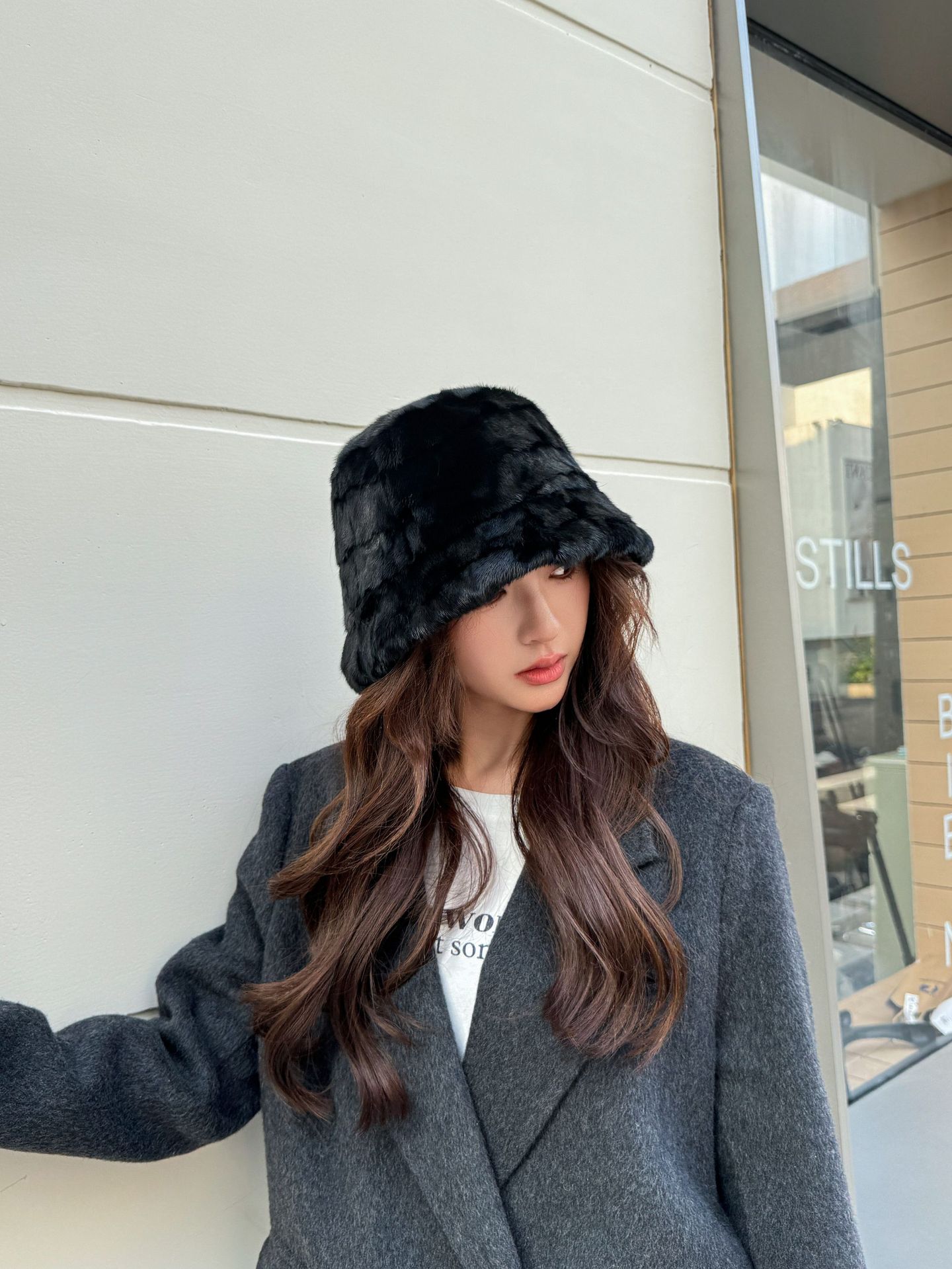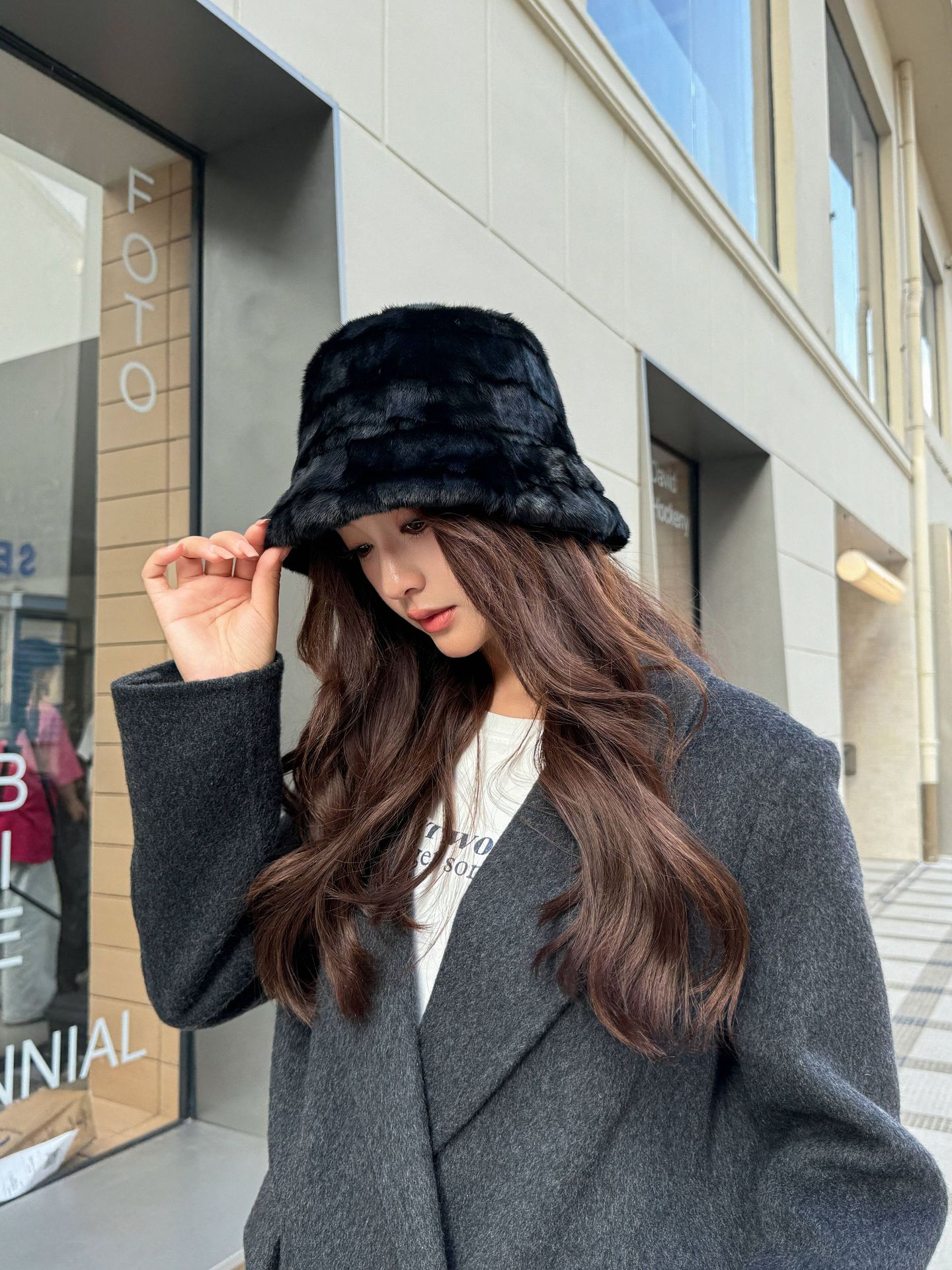 帽子の女性は秋冬に保温します。