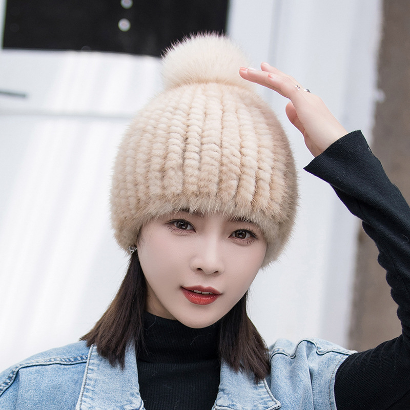 ミンク帽子子供冬ファッションミンク毛帽子キツネ毛玉中高年秋冬保温厚い毛皮帽子