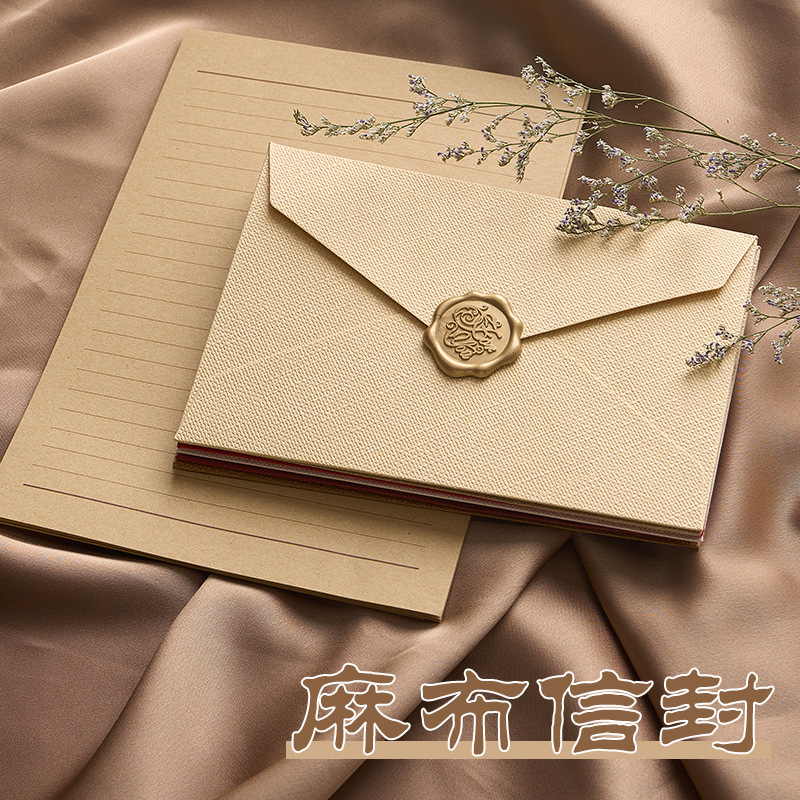 麻布纹信封加厚信纸套装创意情书复古风简约请柬明信片火漆邀请函