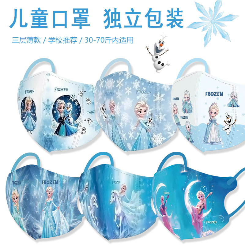 使い捨て3D児童マスク艾莎漫画定位マスク独立包装3層立体通気マスク