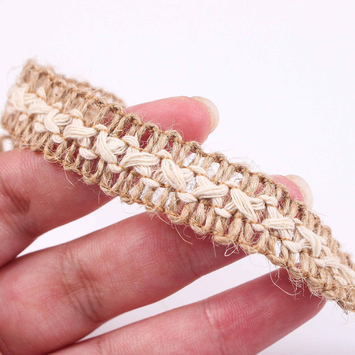 グリッドウェビング黄麻リネンロープ織り手作り装飾クリスマスガーランド生麻レトロ DIY リボン卸売