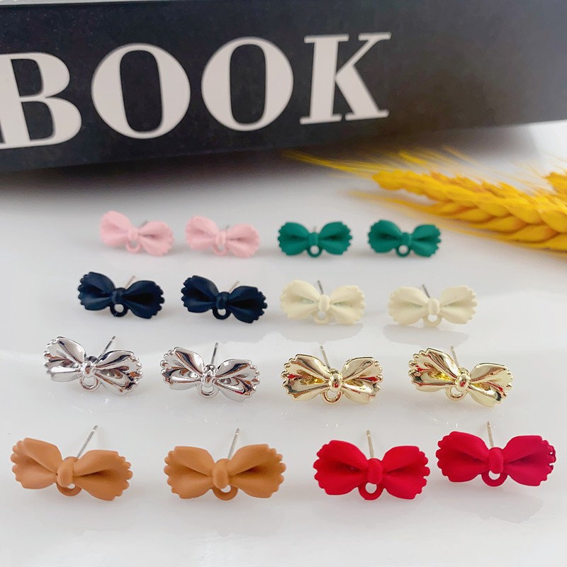 S925銀針カラー蝶ネクタイファッション気質百合シンプルネット赤耳アクセサリーdiy耳釘材料