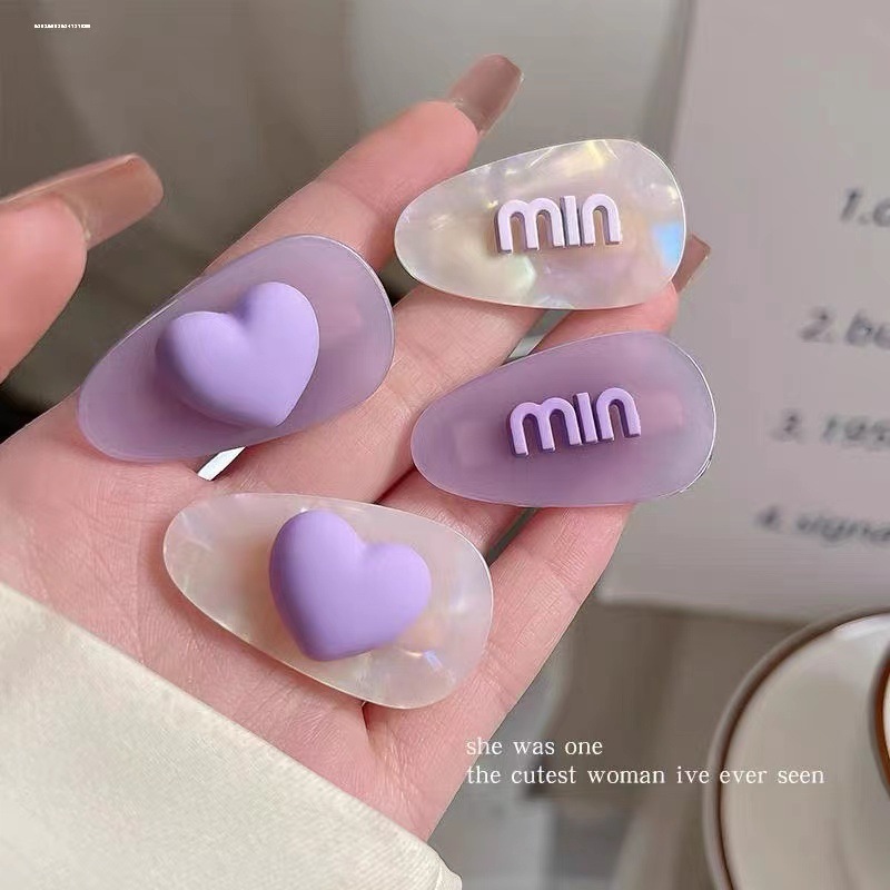 紫の髪の端にカードを挟んでいます。女性の新商品の前髪とカモの口に頭飾りがあります。高級感があります。