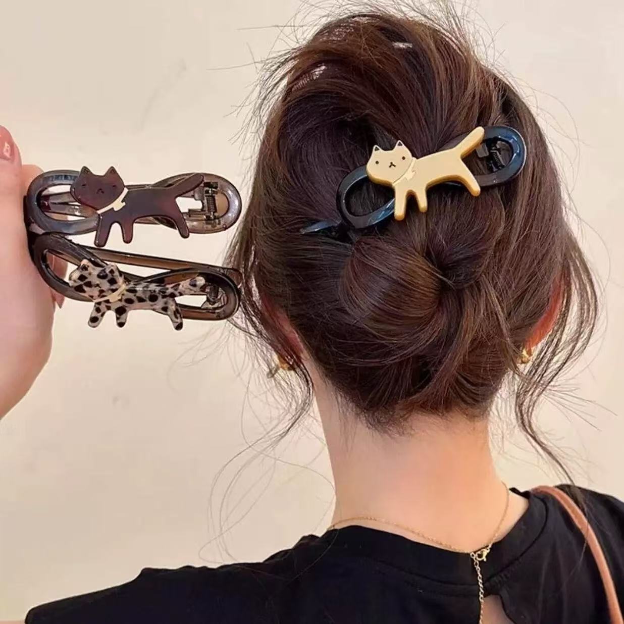 かわいい猫のレトロな髪は女性2025の新しい後頭部のヘアピンの気質をねじってクリップの頭飾りをつかむ