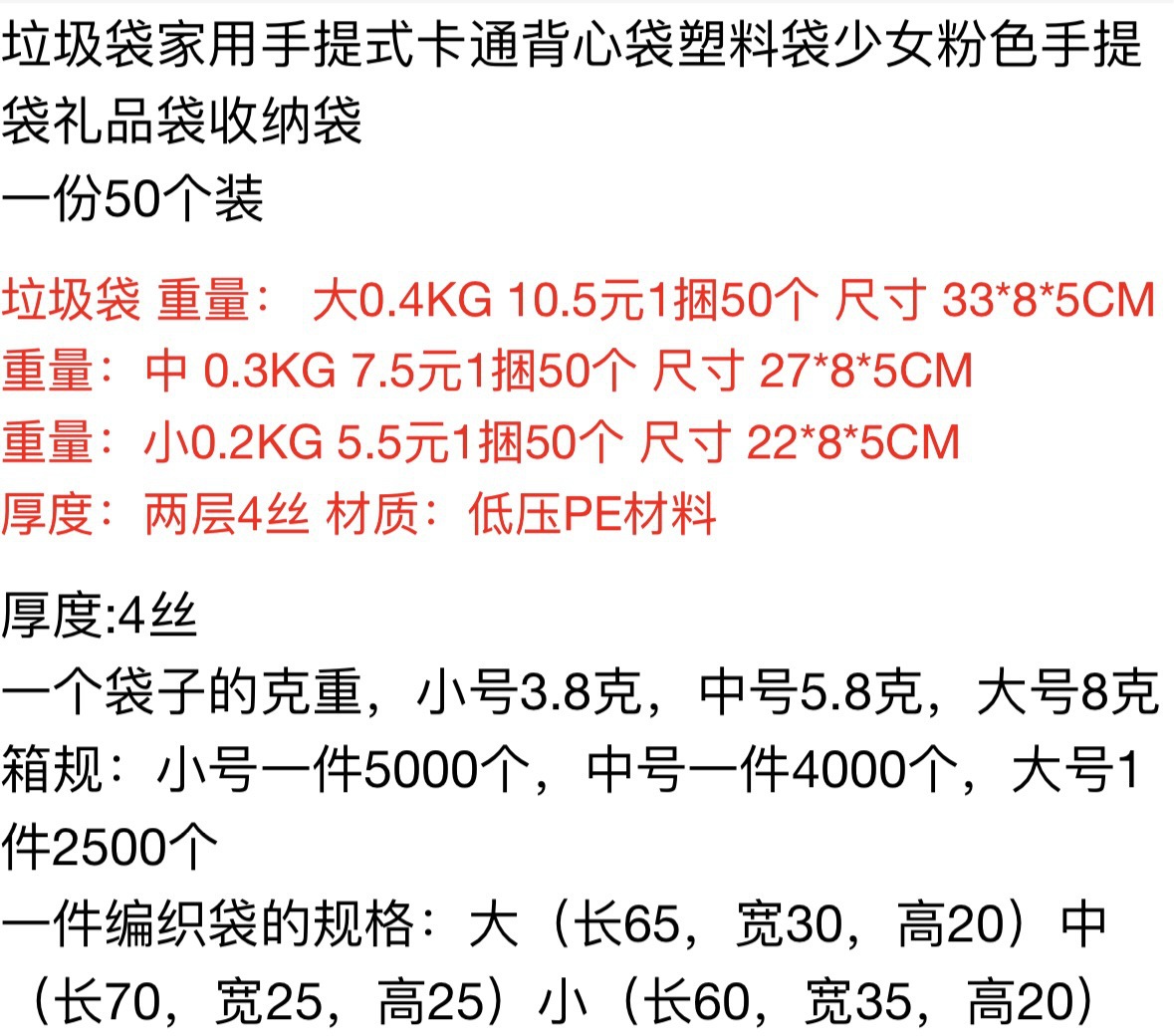 背心袋塑料袋少女粉色手提袋礼品袋收纳袋垃圾袋家用手提式卡通女