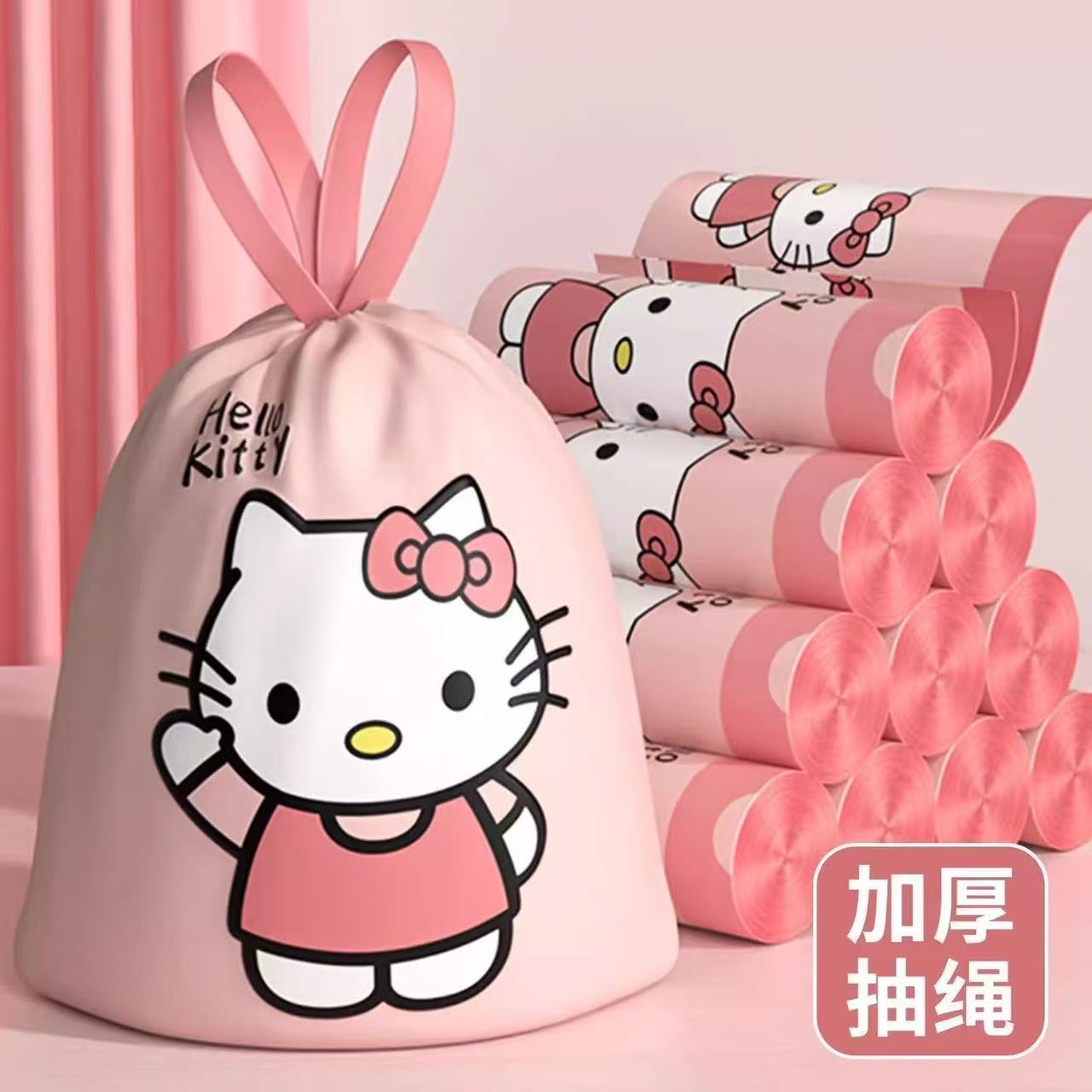 免撕Kitty猫收纳袋抽绳手提式家用大号加厚清洁厨卫多用垃圾袋