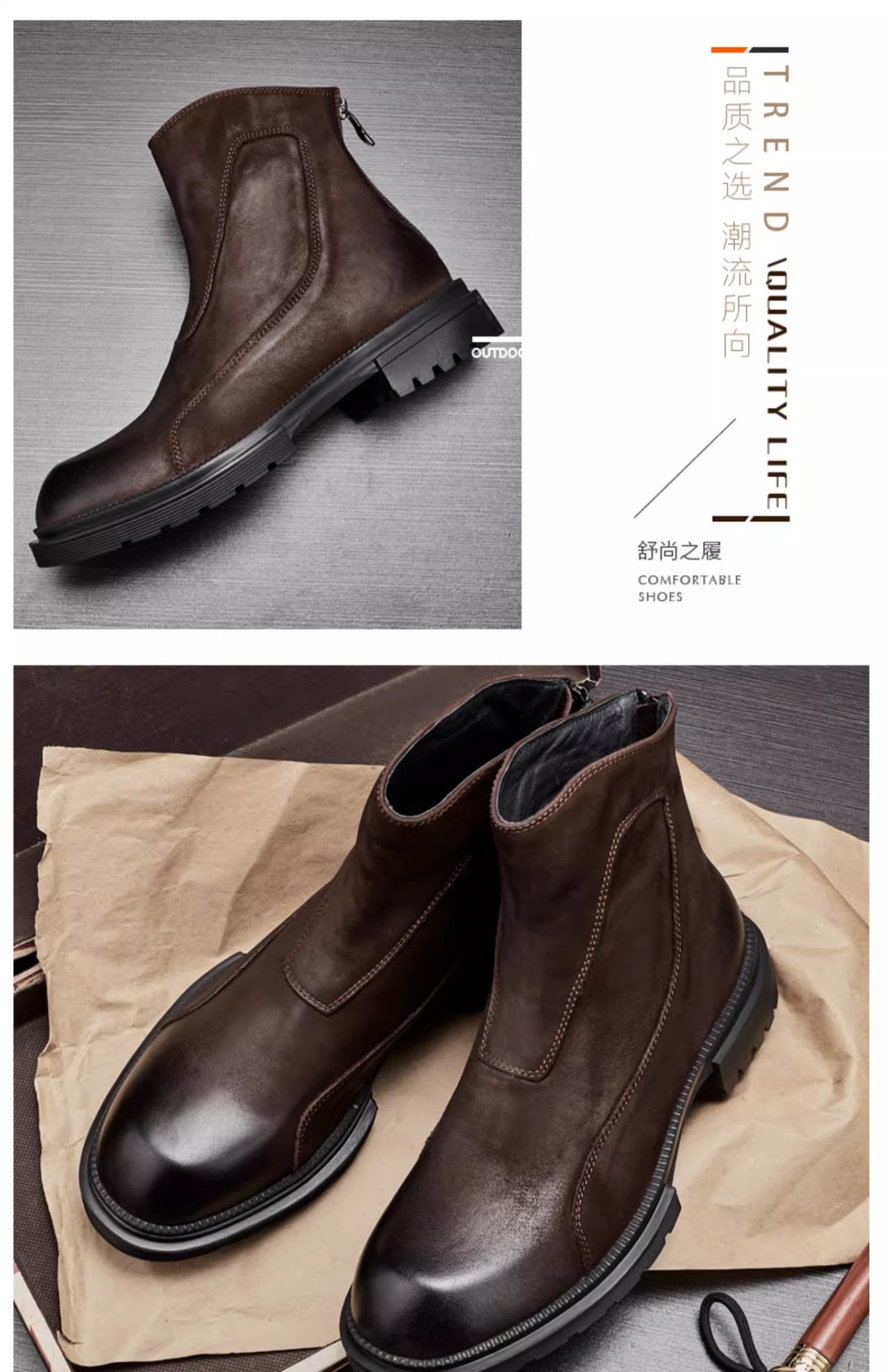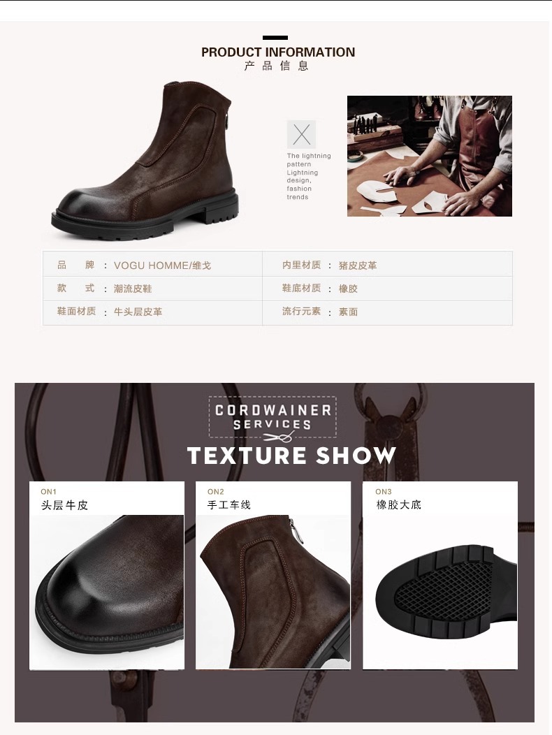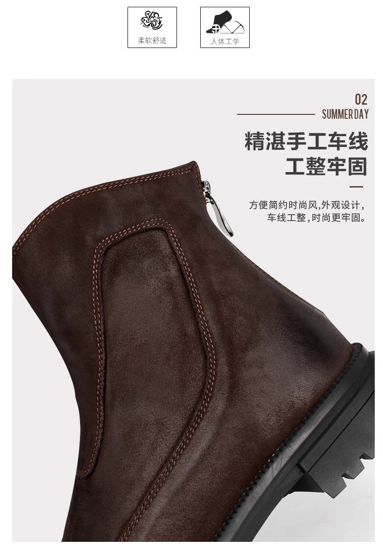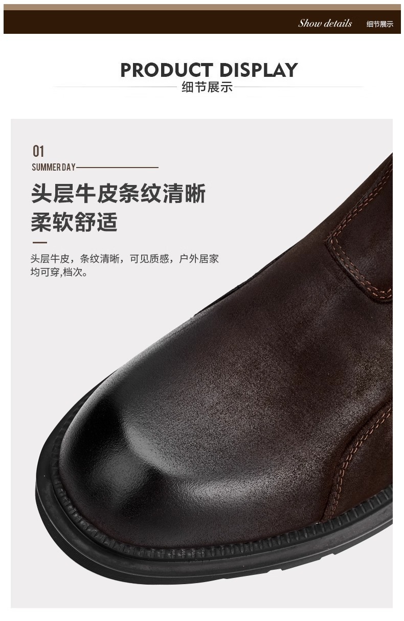 2025秋冬英伦复古切尔西靴男厚底休闲短皮靴一脚蹬高帮马丁靴