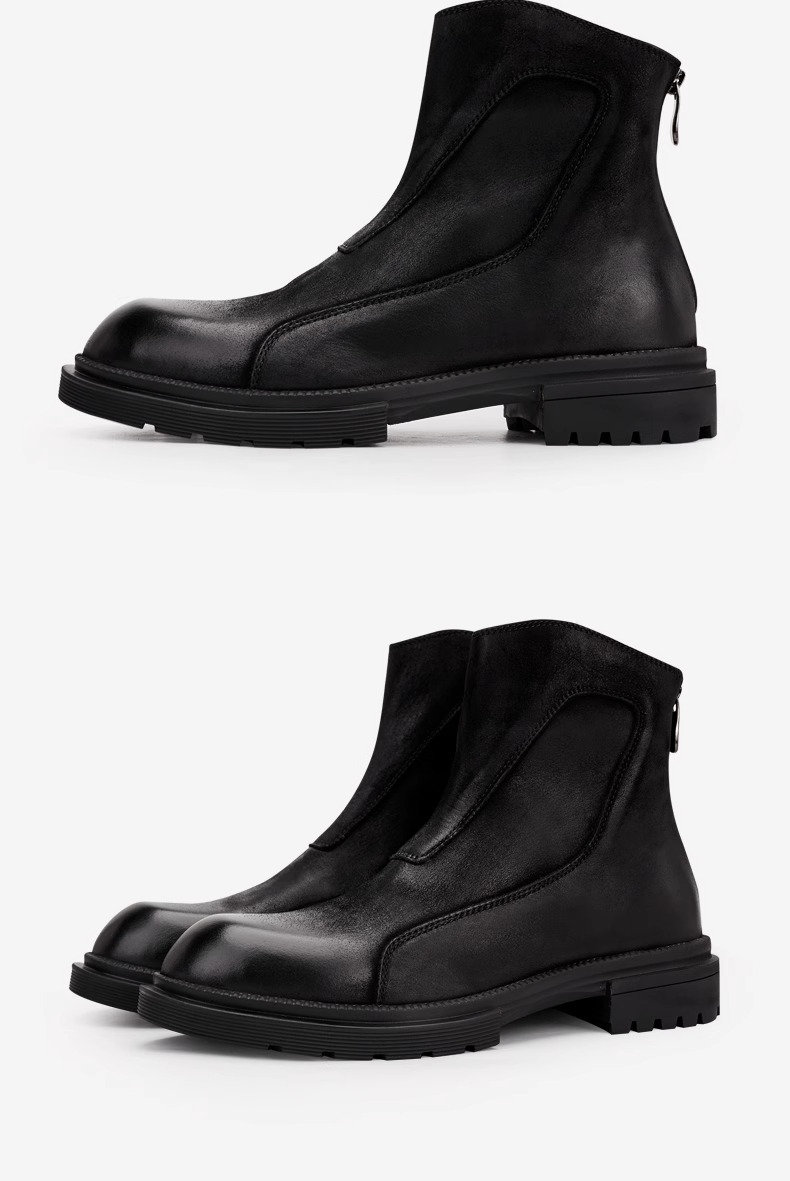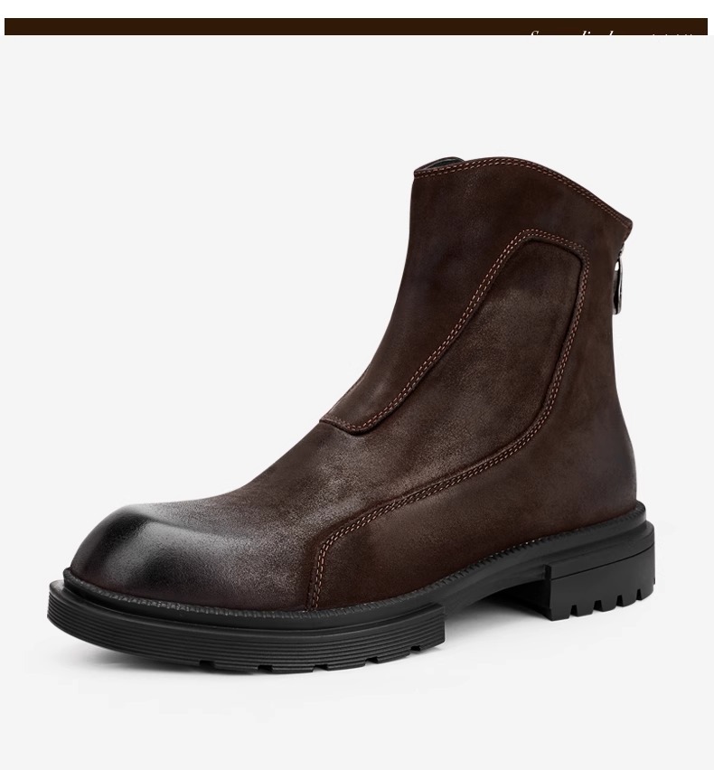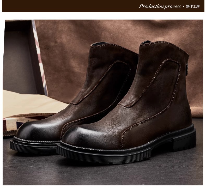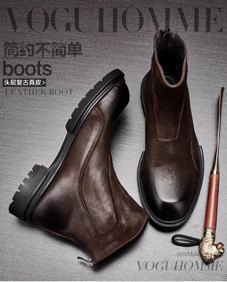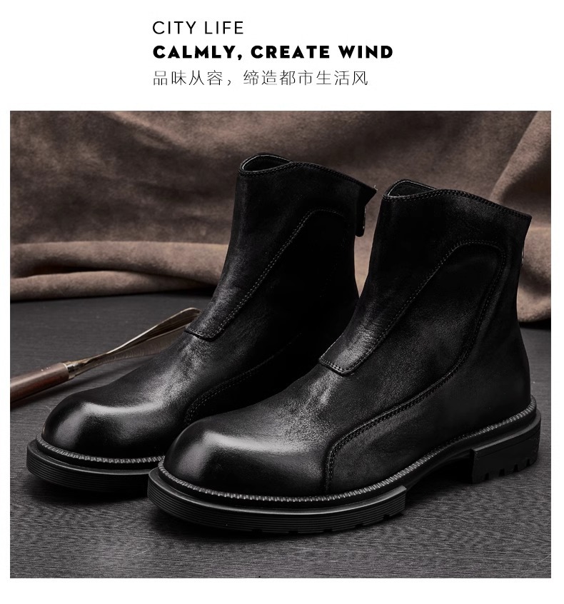 マーティンブーツ男性本革ジッパー高助けブーツ厚い底丸頭チェルシーショートブーツレトロ流行カジュアルブーツ
