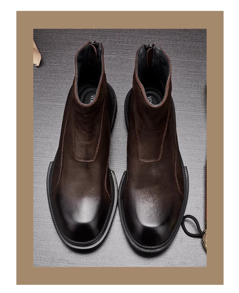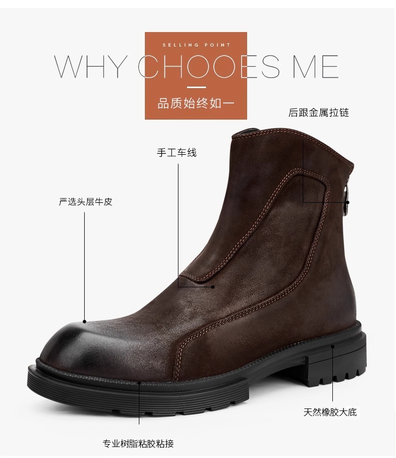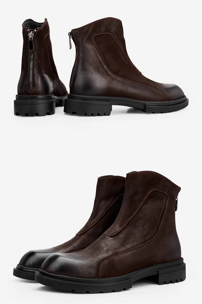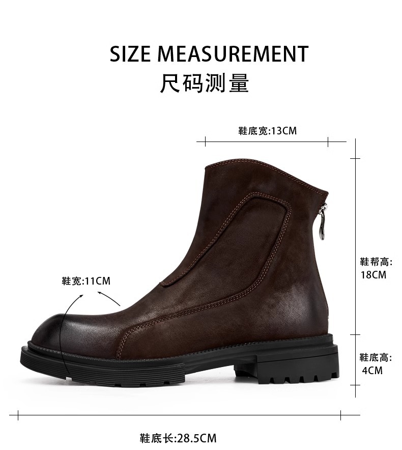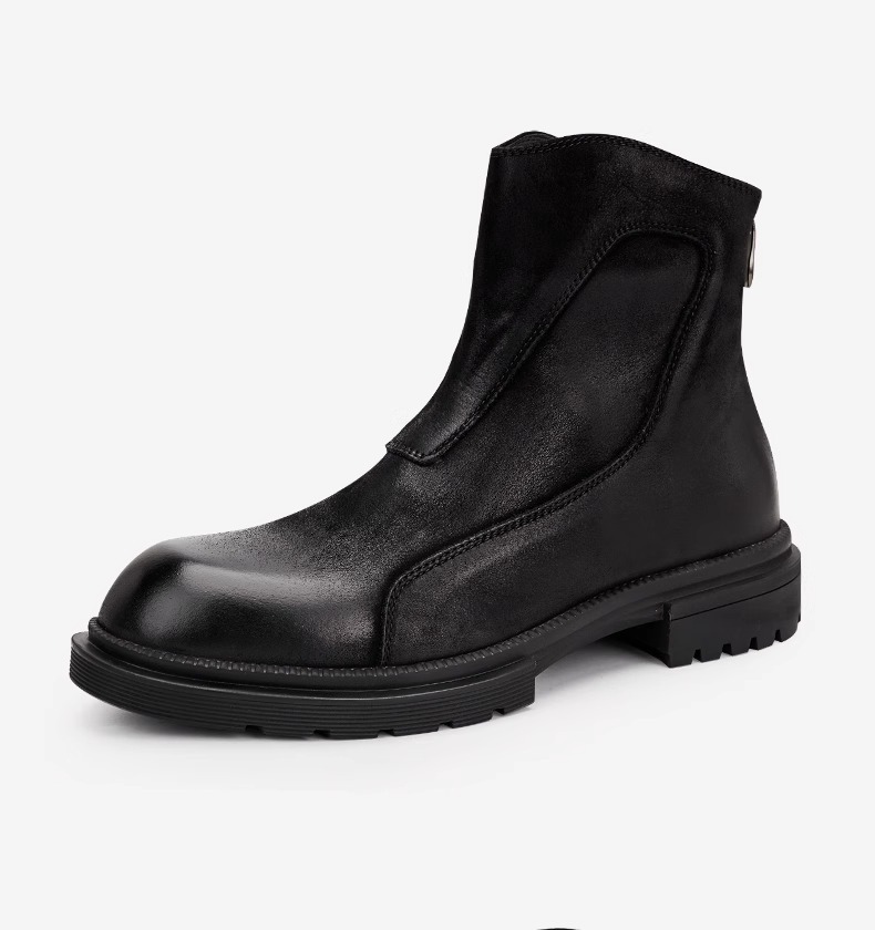 マーティンブーツ男性本革ジッパー高助けブーツ厚い底丸頭チェルシーショートブーツレトロ流行カジュアルブーツ