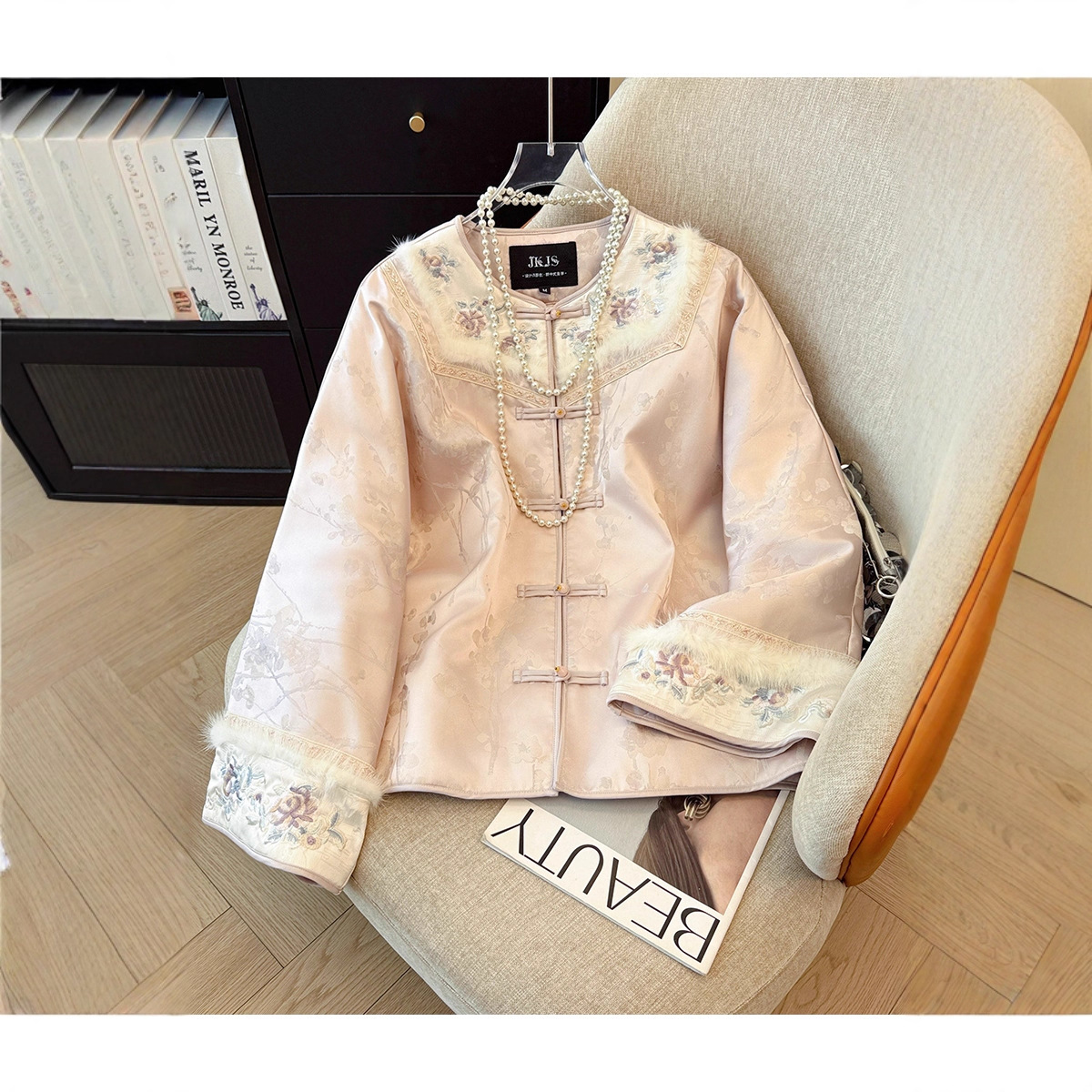 新中国式国風改良漢服盤バックルジャカード錦重工刺繍長袖カーディガン女性コート秋冬新作
