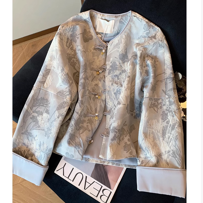 新中国風ジャカード盤ボタンショートコート女性2025春新作高級感レトロ気質名媛上着