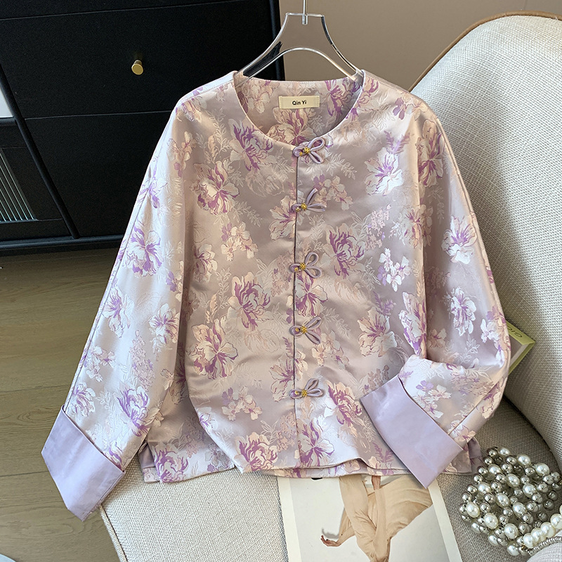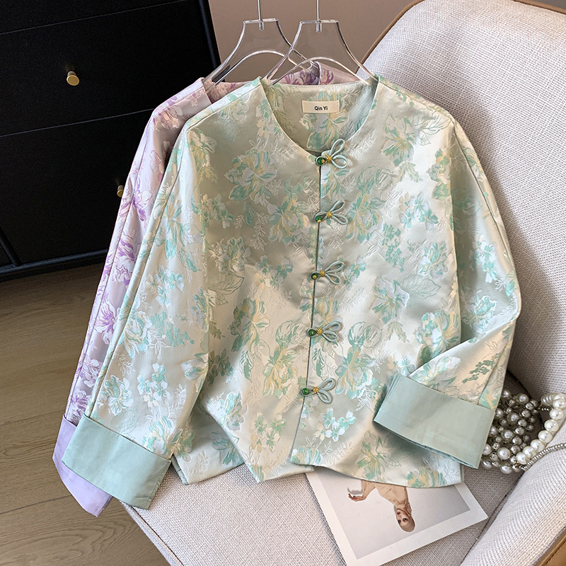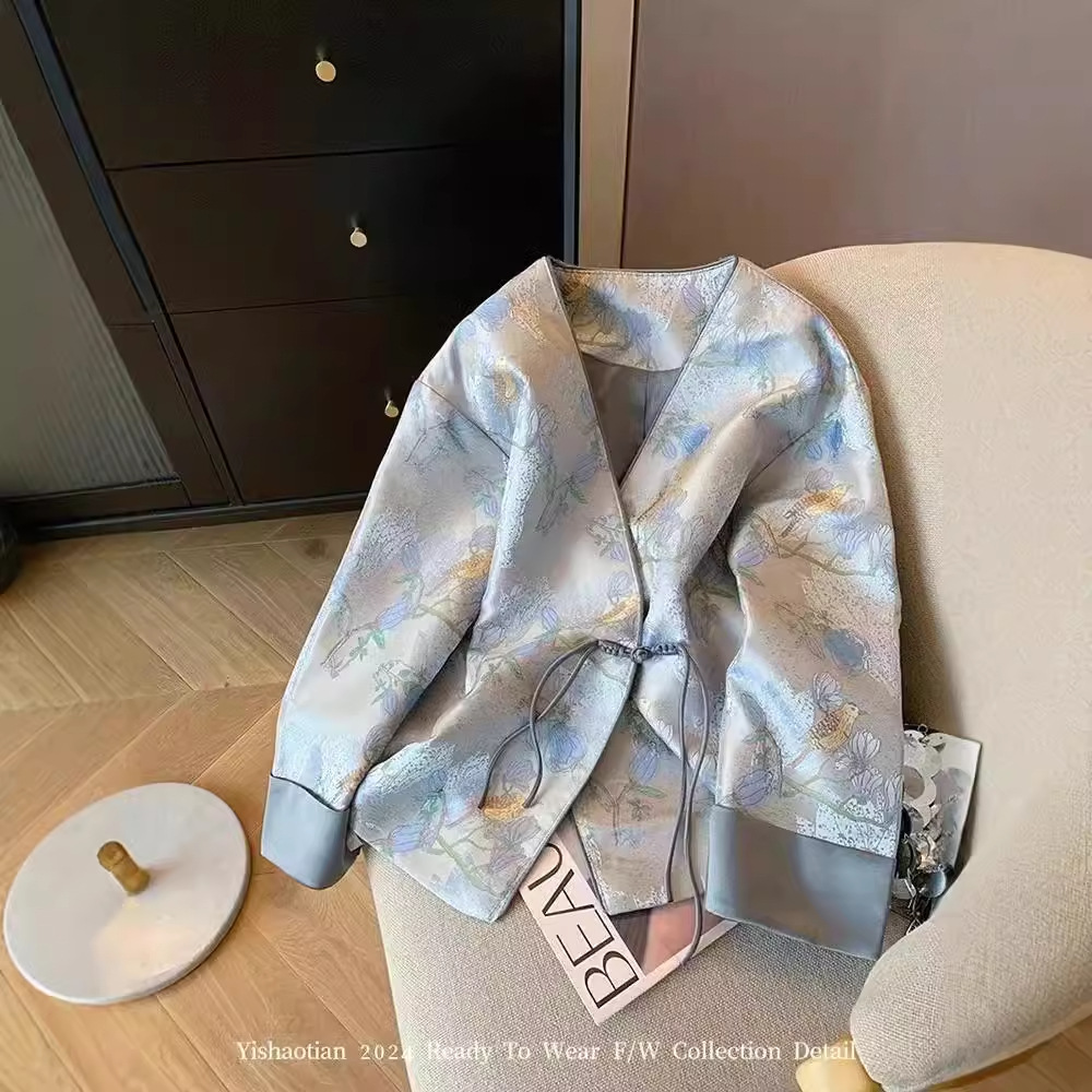 新しい中国風のサテンジャケット女性のための 2025 春の新しい甘い気質ハイエンドの軽くて多用途のトップ