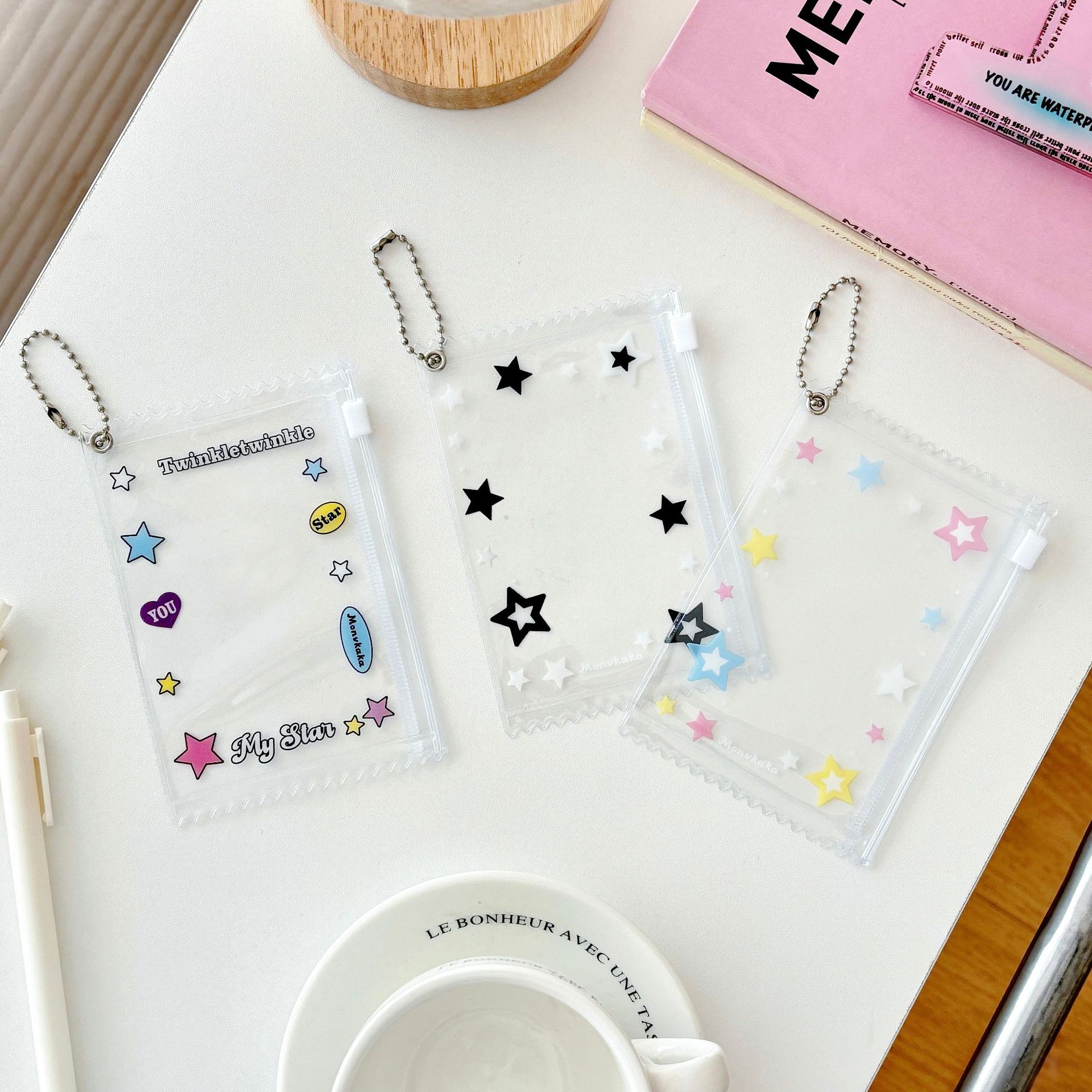 オリジナルの警戒線のファスナーのカードカバーの収納袋の包みのペンダントの透明な収納袋の3寸の小さいカードの星のカードカバー