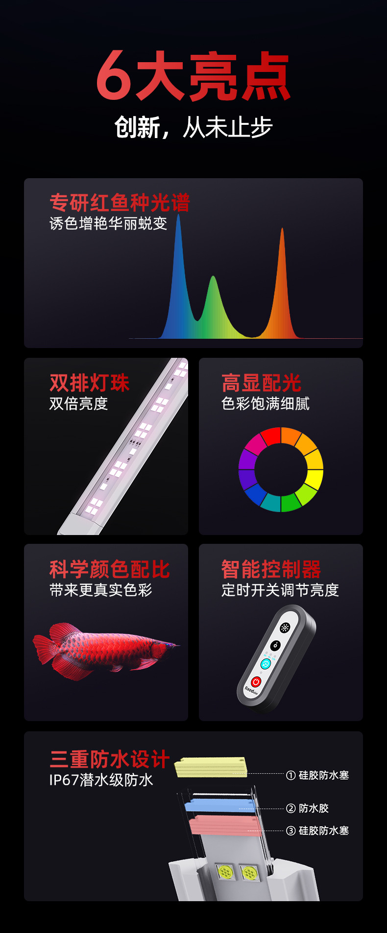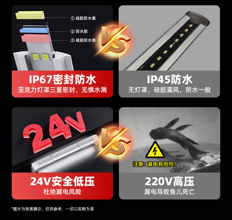 龍魚灯魚筒灯ledランプ防水超亮潜水増紅増艶紅魚不紅水照明専用金龍