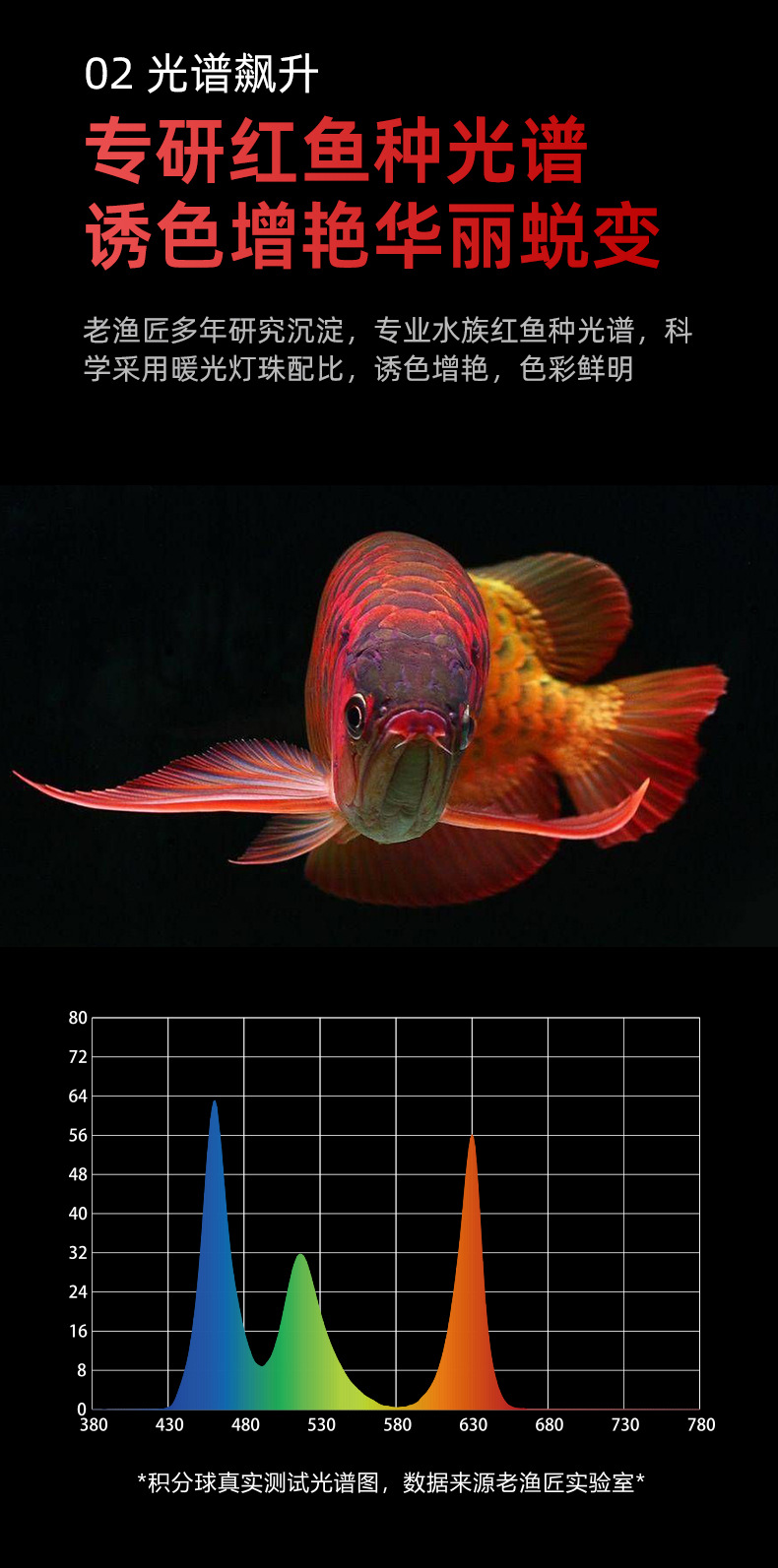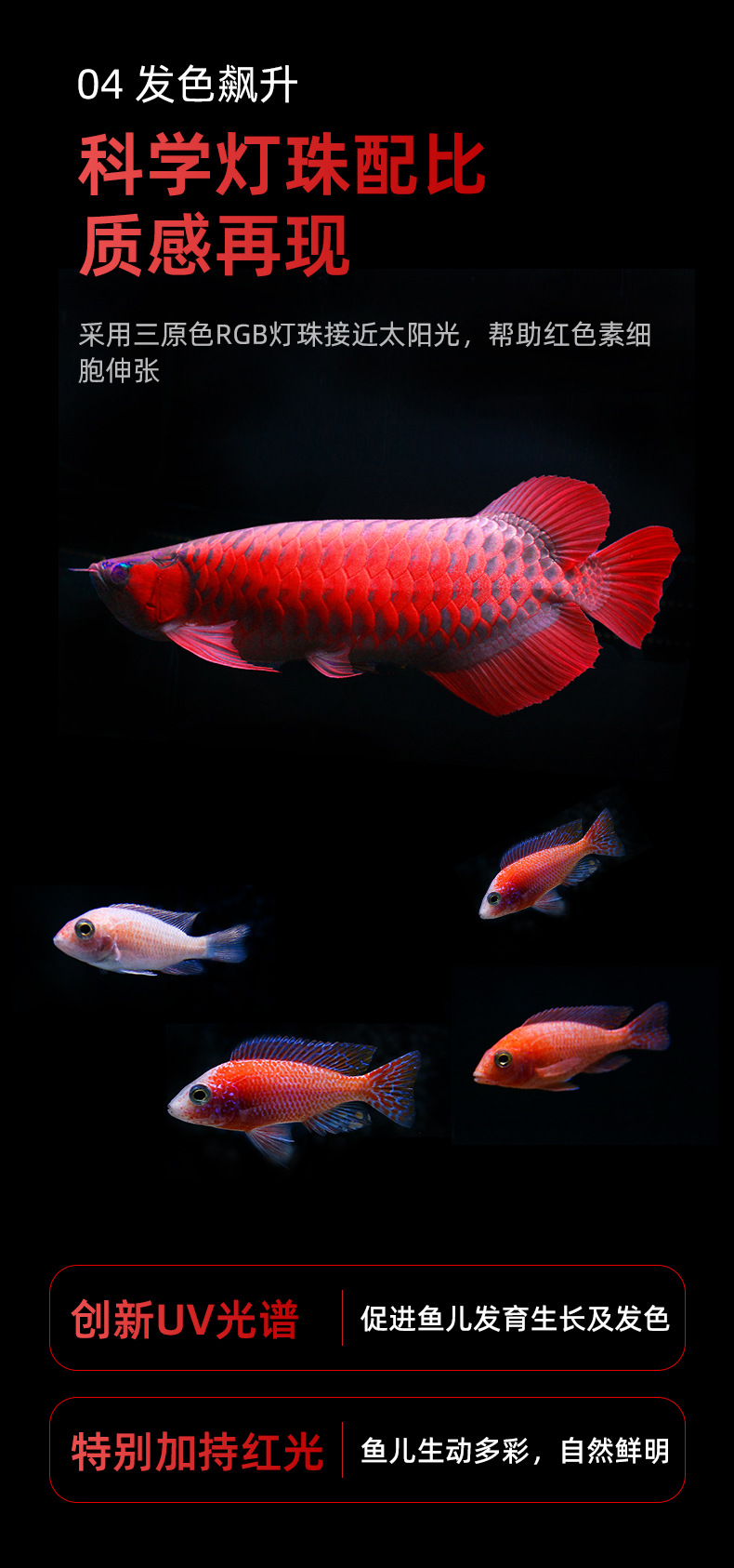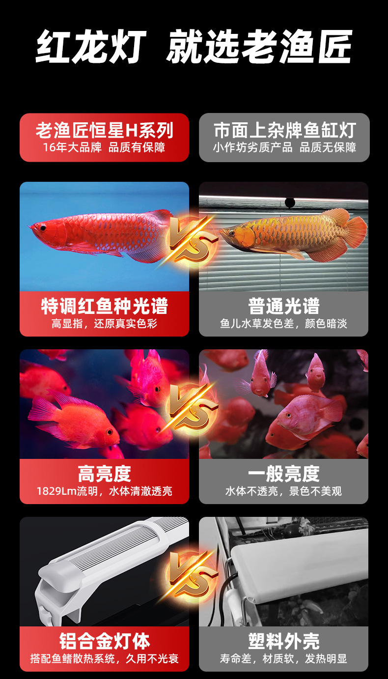 老漁匠増艶魚筒灯ledランプ防水三基色紅龍増色灯オウム金魚錦鯉発色灯