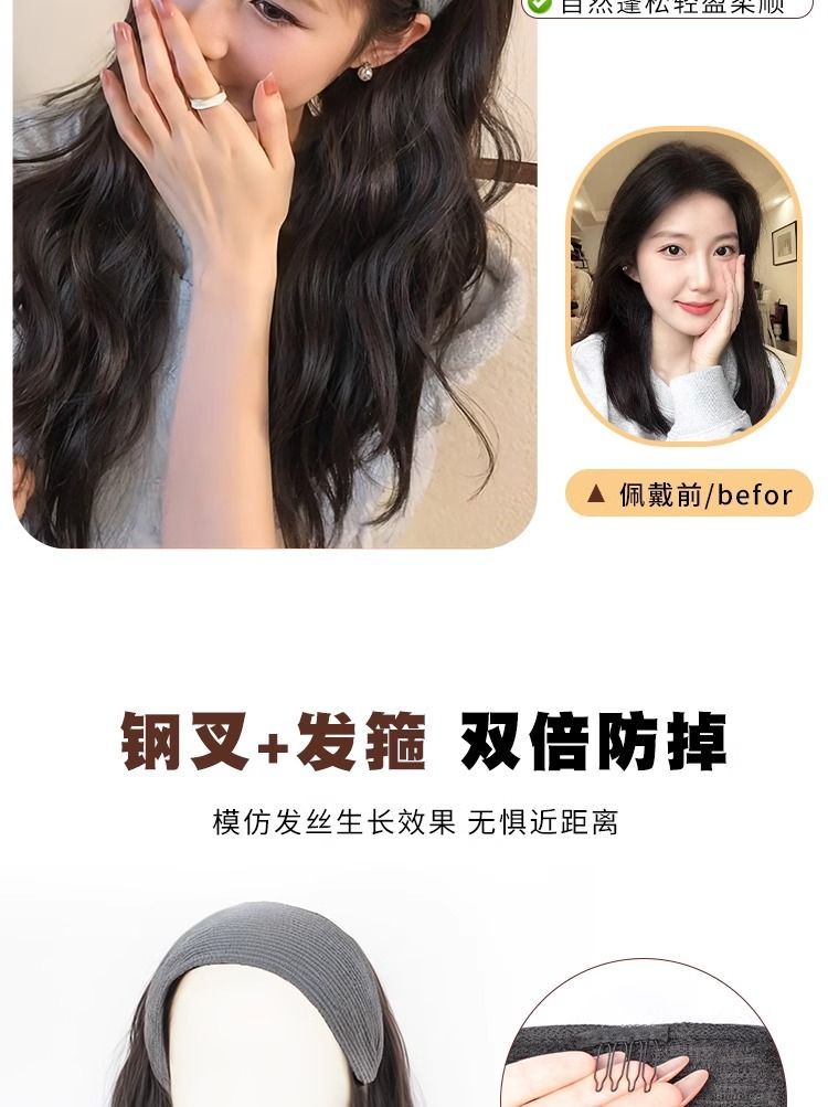 发箍假发女一体可拆卸式仿真发高颅顶自然时尚增发量水波纹半头套