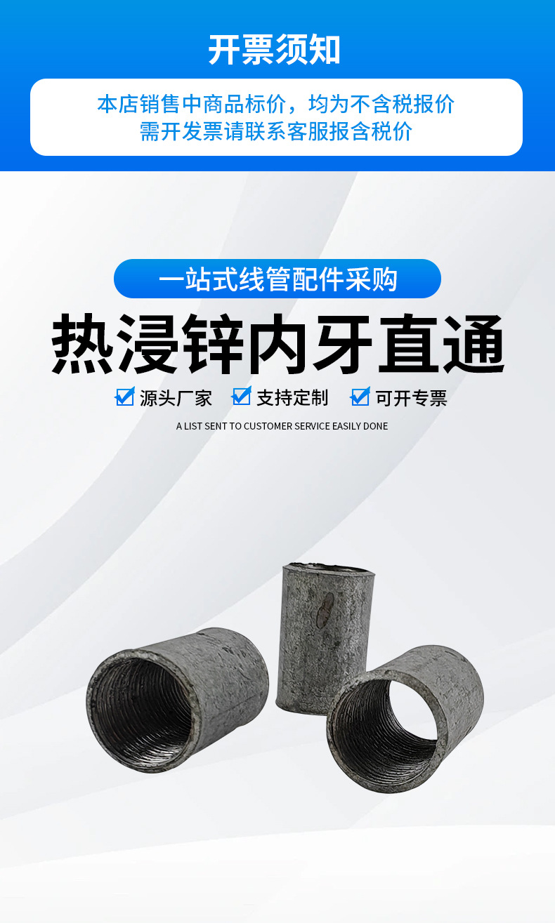 メーカー直供熱浸亜鉛線管内歯直通糸管直接継手溶接パイプ部品内歯直通