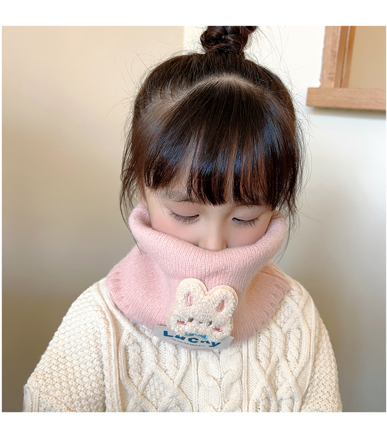 熊超萌男女童ニットマフラー冬の韓国版はウサギの毛をまねてかわいい保温防風子供のマフラーを厚くします。