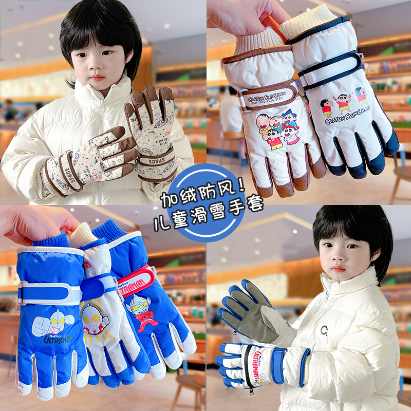 ウルトラマン児童スキー手袋冬の男女児童にベルベットをつけて学生が学校に乗る子供の屋外で雪を遊ぶ
