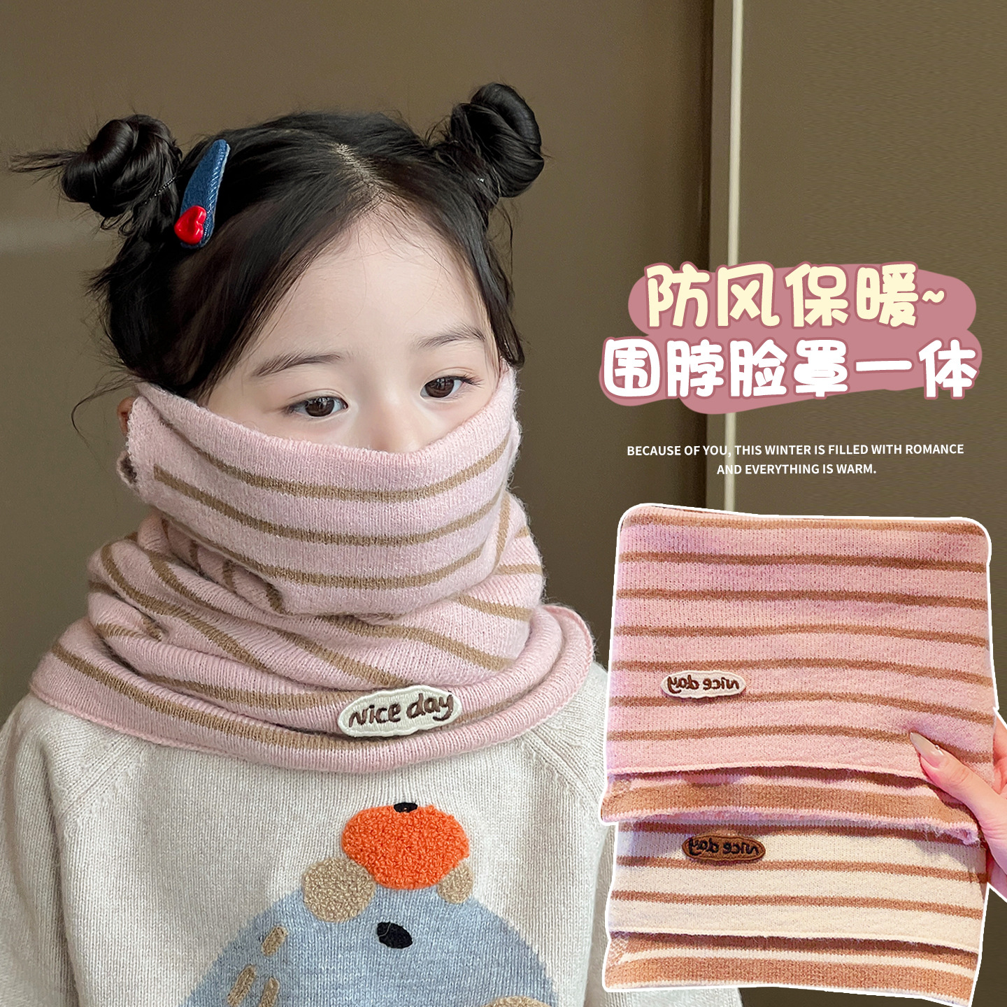 儿童2025围脖秋冬季挂耳面罩围巾女孩脖套保暖护颈女童防风口罩潮