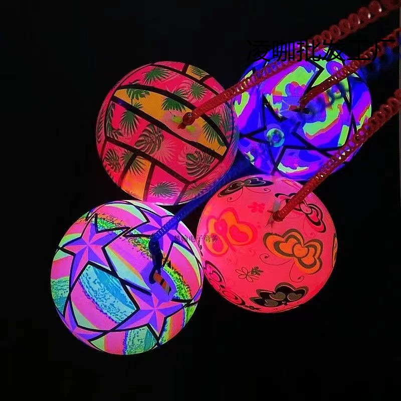 Pvc弾性ボールスプリングバックひも付き発光ラケットボールフラッシュサッカーロープボール弾力玩具地押し卸売り