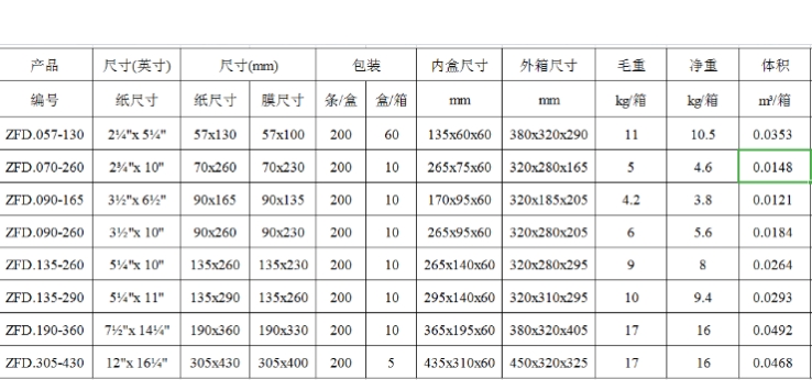 仕様とモデル 135*280mm 200個/箱,190*360mm 200個/箱,305*430mm 200個/箱,90×260mm 200個/箱,90×165mm 200個/箱,70*260mm 200個/箱,57*130mm 200個/箱