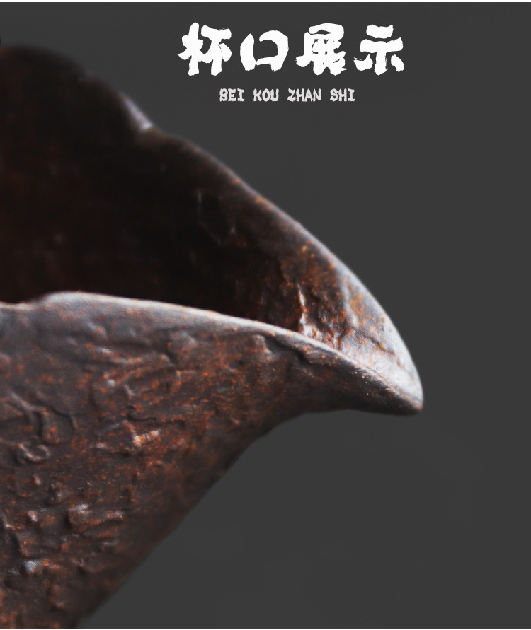 レトロ粗陶老岩泥花びら主人ティーカップ中国式創意工夫茶道個性飲み水品茗シングルカップ