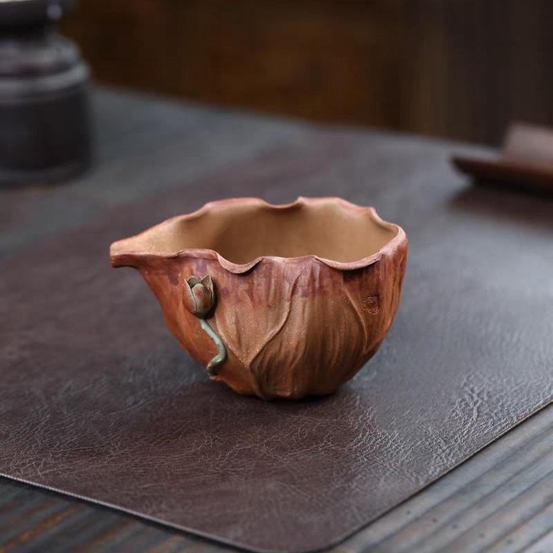 レトロな粗い陶器、古い岩泥蓮の葉、手持ちの正義のカップ、パーソナライズされた創造的なカンフー茶道、茶海茶ディバイダー、水カップ