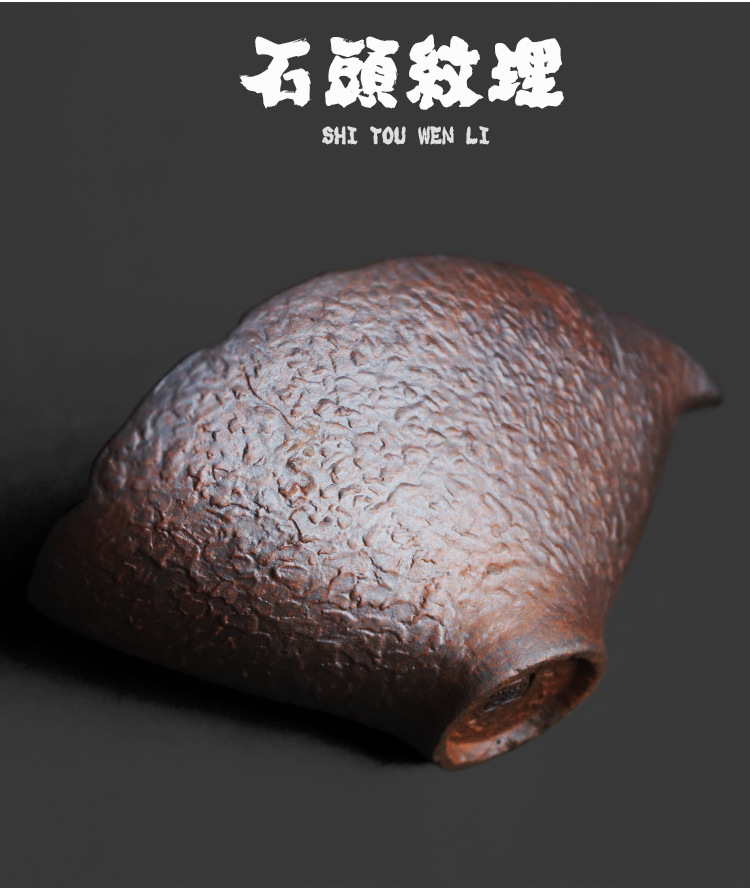 レトロ粗陶老岩泥鷹口手掴み正義杯個性創意石紋筋理茶海分茶器均水杯
