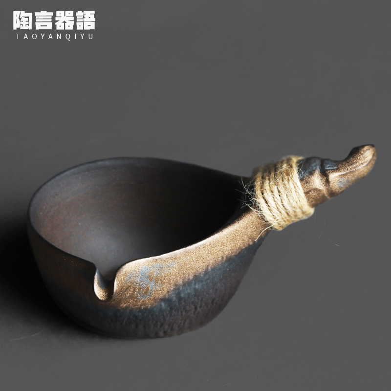 景徳鎮岩陶金匙の耳の形の側は公道の杯の復古の粗い陶の工夫の茶道のお茶の海を茶器に分けます。