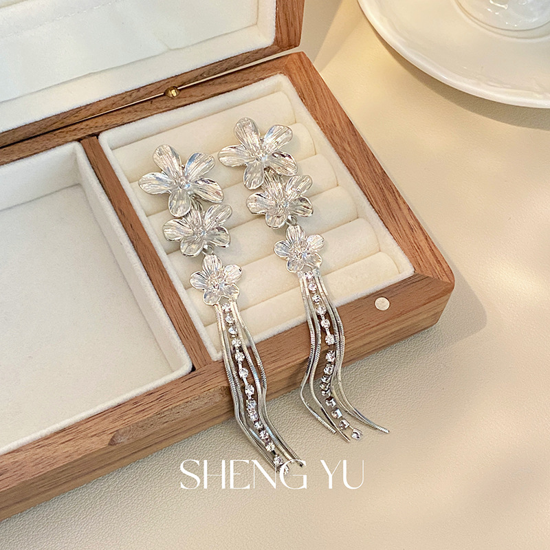 小紅の本の同項の精巧で軽い豪華な金属の花のフリンジのピアスの宮廷の高い顔の値のファッションの個性の精巧なイヤリング