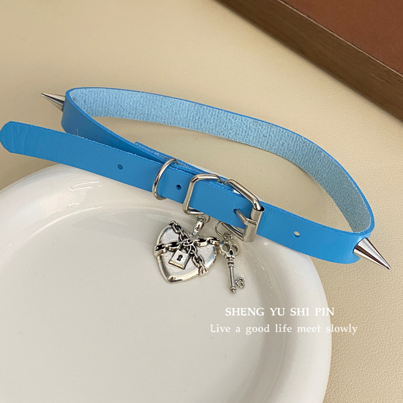 亜文化パンク金属首輪pu皮愛頭蓋リベットデザイン首飾り甘いクール鎖鎖y 2kギャル