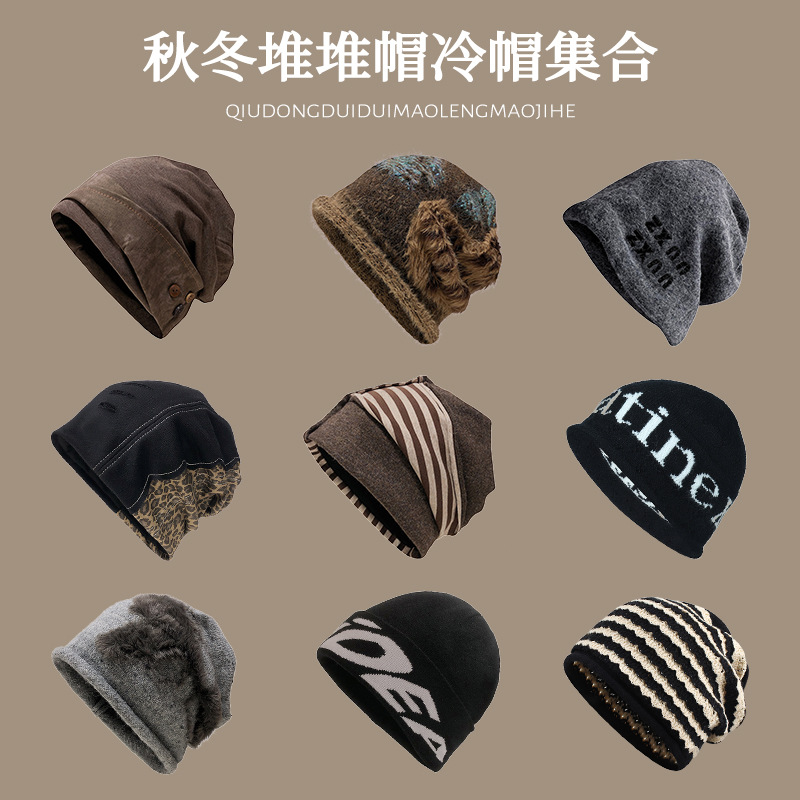 女春秋美式辣妹复古豹纹堆堆帽子废土风包头帽冷帽时尚显脸小潮