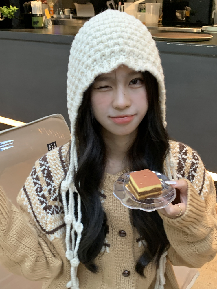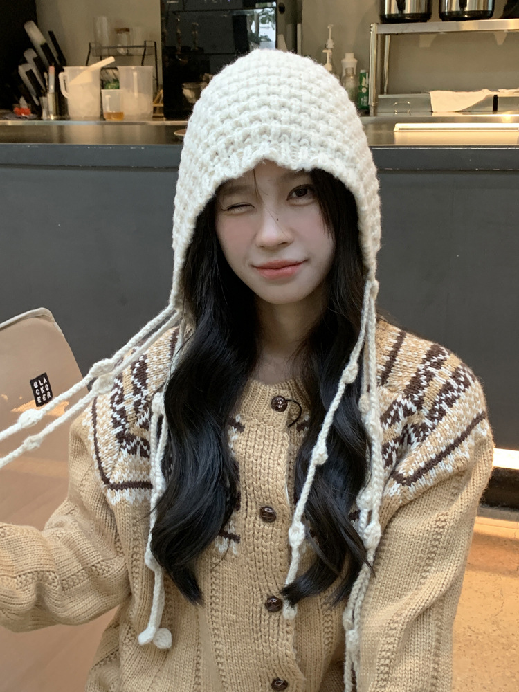 费尔岛风巴拉克拉法帽女款秋冬季保暖防寒显脸小针织毛线帽包头帽