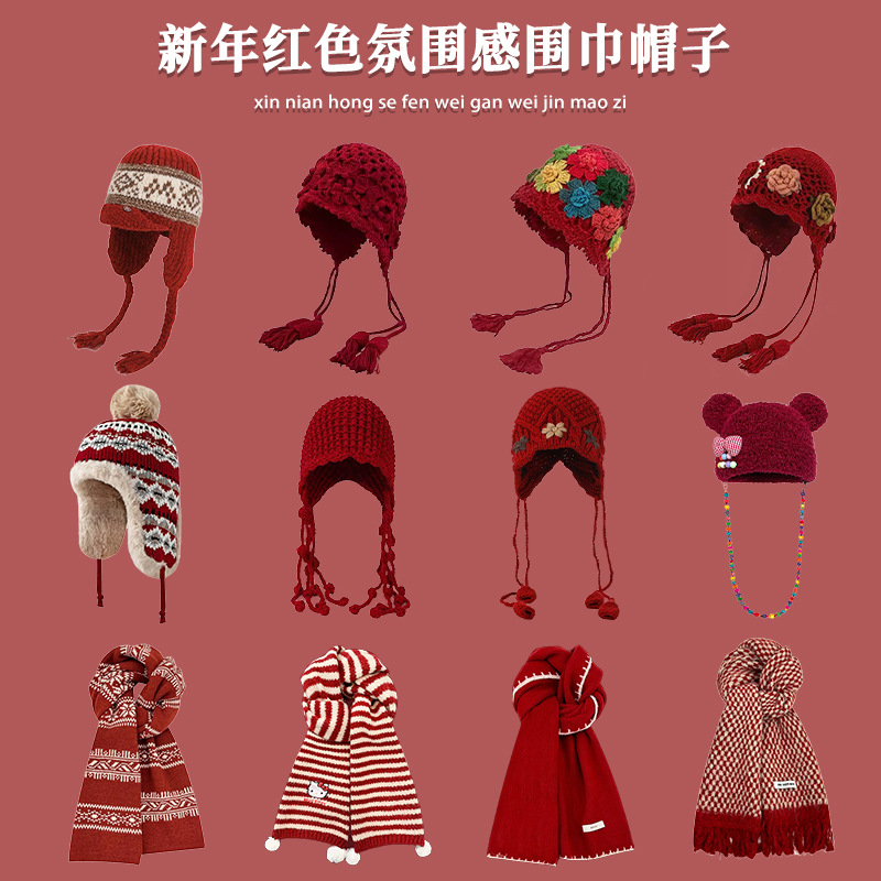 新年红韩版氛围感女冬季加厚围巾复古保暖百搭羊毛混纺针织小围脖