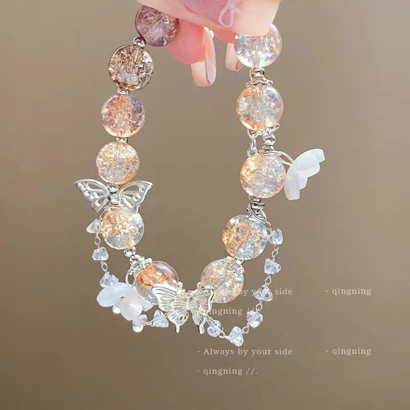 新しい中国式の半分の腕輪の蝶の数珠のブレスレットの女性insの精巧な設計の手環の高い顔の値の甘い学生の手は飾ります。