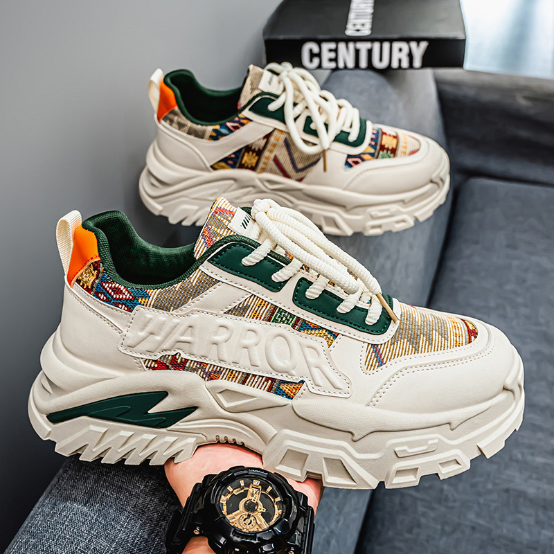2025夏季新款厚底拼色渲染百搭舒适轻便潮流时尚休闲时尚潮流男鞋