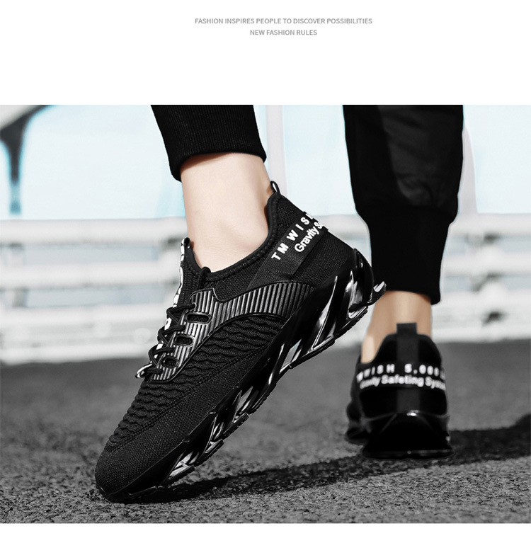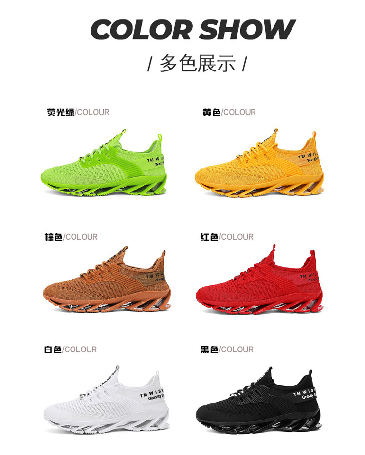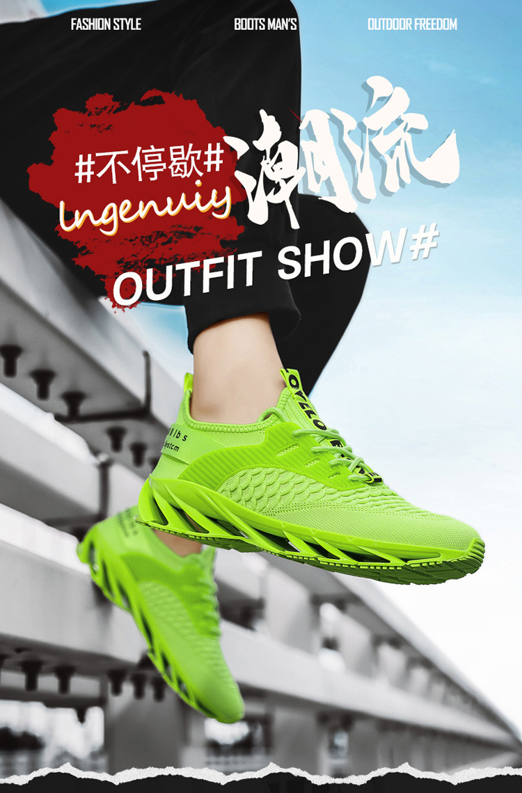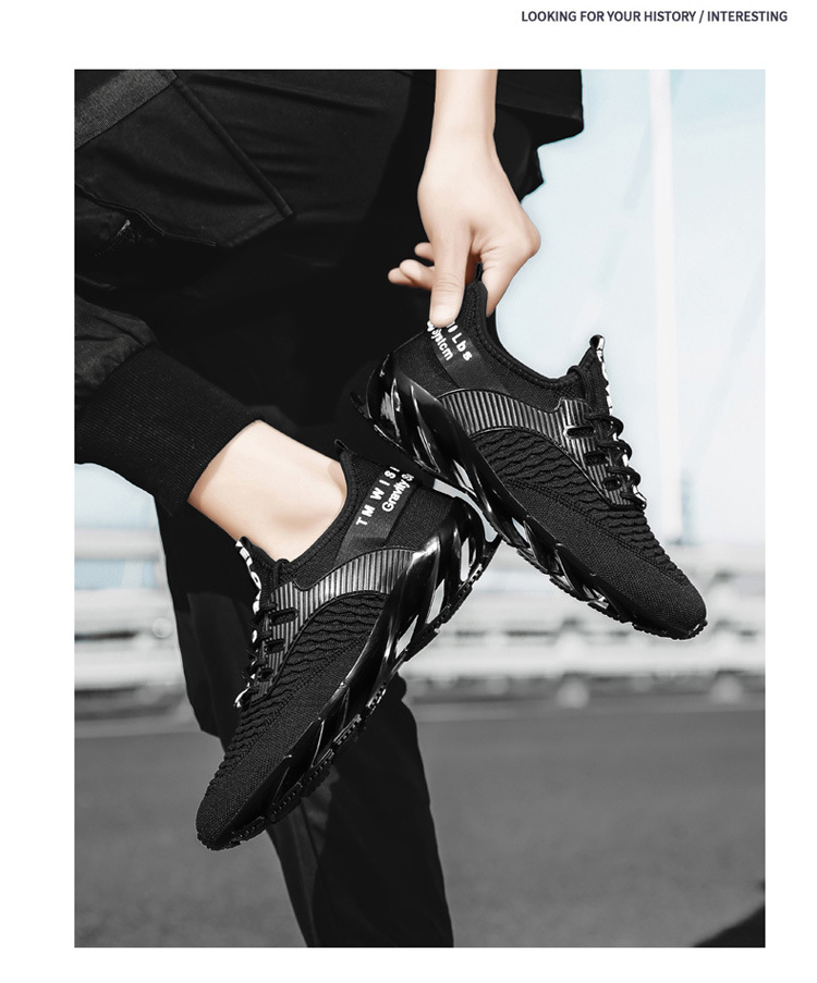 スポーツシューズ男性ファッション飛織通気国潮ブレード厚い底緩震男性靴大きいサイズファッションカジュアルランニング靴