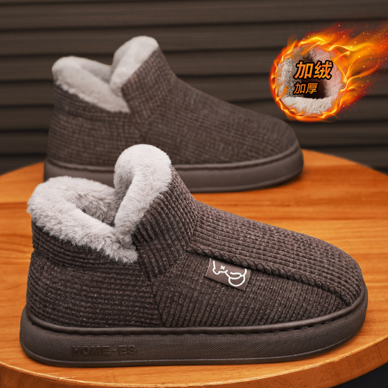 綿のスリッパを包む男性は冬にベルベットをつけて保温します。